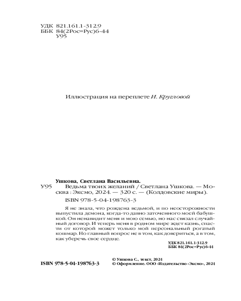 💳 Оплатить за товар можно при получении 🇰🇿 Есть бесплатная доставка по Казахстану от 1 дня 🎁 Копите бонусы с каждой покупки Серия: Колдовские миры. Новое оформление Я не знала, что рождена ведьмой, и по неосторожности выпустила демона, когда-то давно заточенного моей бабушкой. Он ненавидит меня и мою семью, но нас связал случайный договор. И теперь меня в родном мире ждет казнь, спасти от которой может только мой персональный рогатый кошмар. Но главный вопрос не в том, как довериться, а в том, как уберечь свое сердце. |