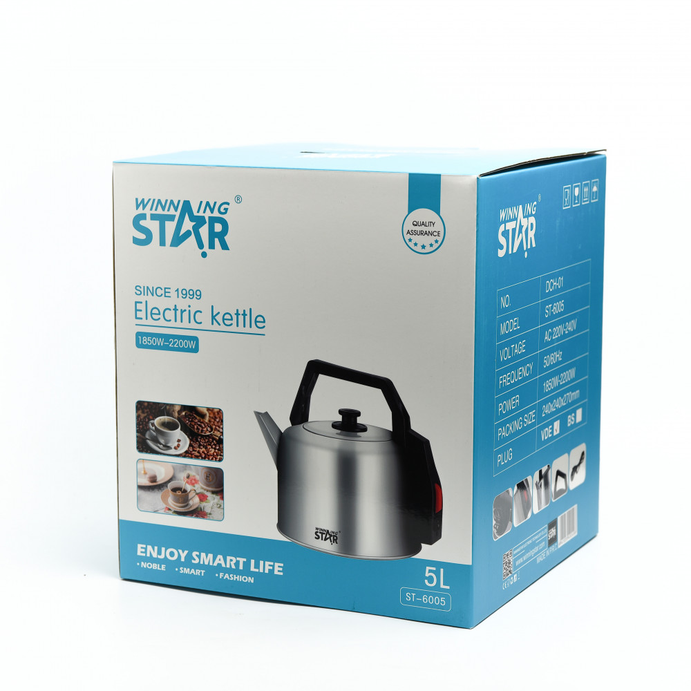 Winning Star Электрочайник ST-6005В данный момент этот товар отсутствует в продаже. Возможно, у нас найдется аналогичный или похожий товар здесь. Электрический чайник — это необходимый прибор на любой кухне, который позволяет приготовить кипяток для чая, кофе, или других горячих напитков за считанные минуты. Он значительно упрощает жизнь, особенно в утренние часы, когда каждая минута на вес золота. Чайник, объемом 5 литров, идеально подойдет для большой семьи или для использования в офисе. Обладает достаточной мощностью для быстрого нагрева воды. |
