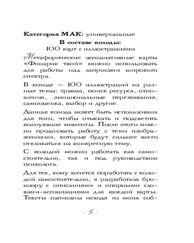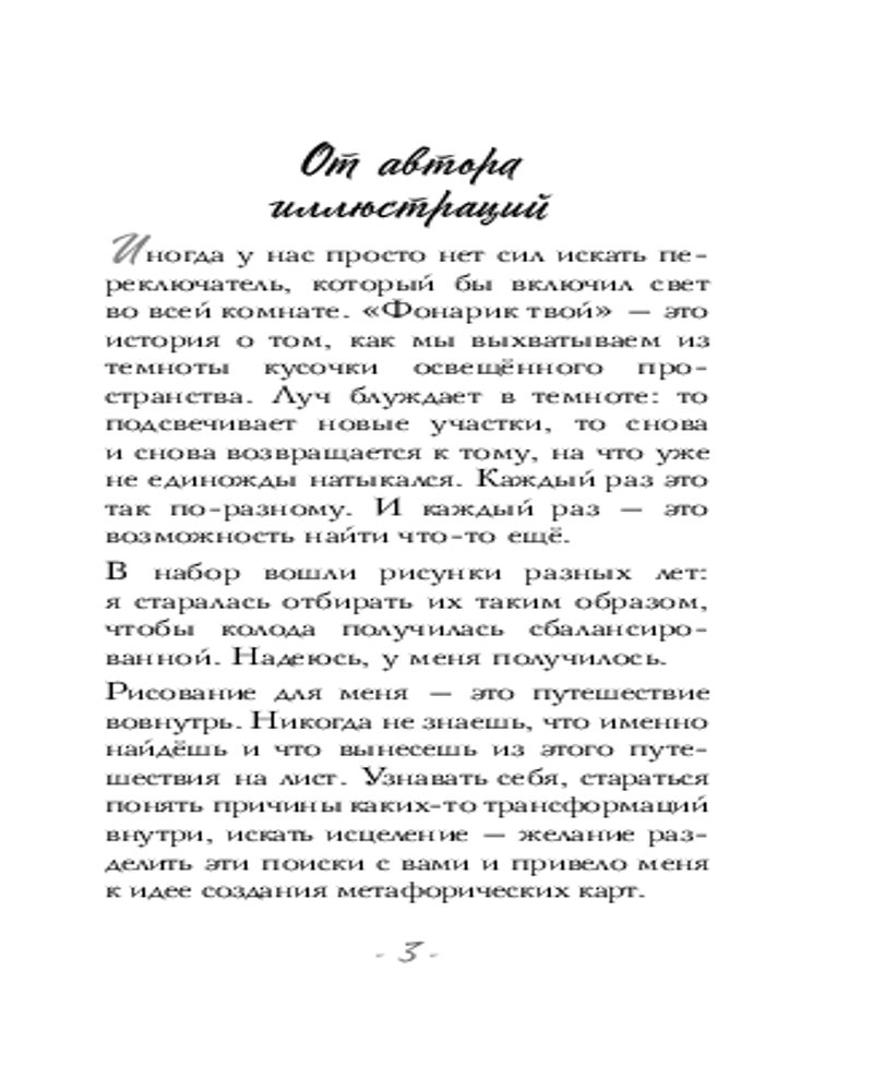 💳 Оплатить за товар можно при получении 🇰🇿 Есть бесплатная доставка по Казахстану от 1 дня 🎁 Копите бонусы с каждой покупки Серия: Черным-бело. Метафорические карты Когда в голове слишком много мыслей, а сердце тяжелеет от сомнений, становится одиноко и страшно. Найти силы обратиться за помощью или распутать клубок сложных ситуаций помогут удивительные метафорические карты от потрясающей художницы Зеленой лампочки. Зеленая лампочка или просто Саша — популярный иллюстратор, создающий своим творчеством особый мир. Мир, полный света, грусти и надежды. А еще любви. |