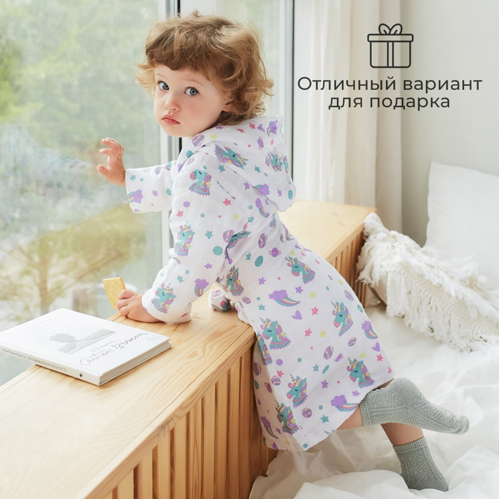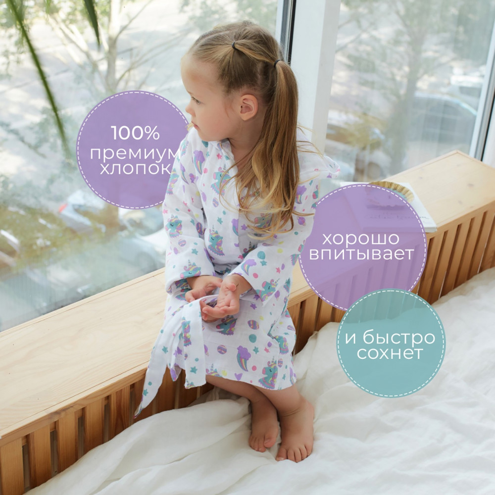 Отзывы «Халат для девочек муслиновый «Единороги»»