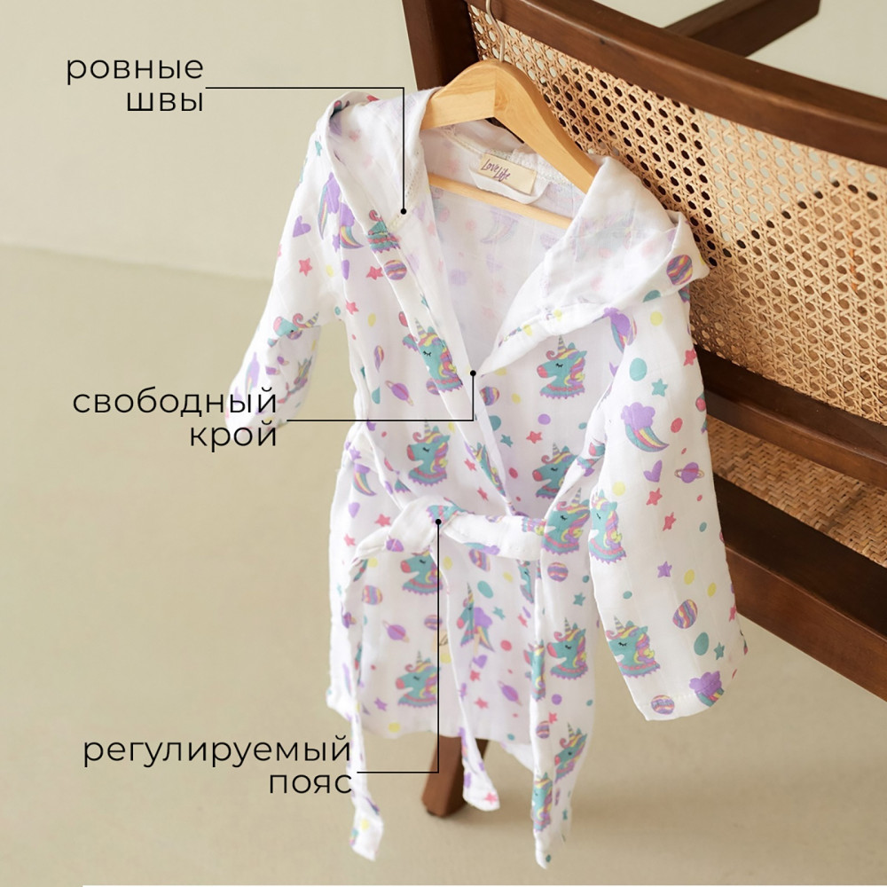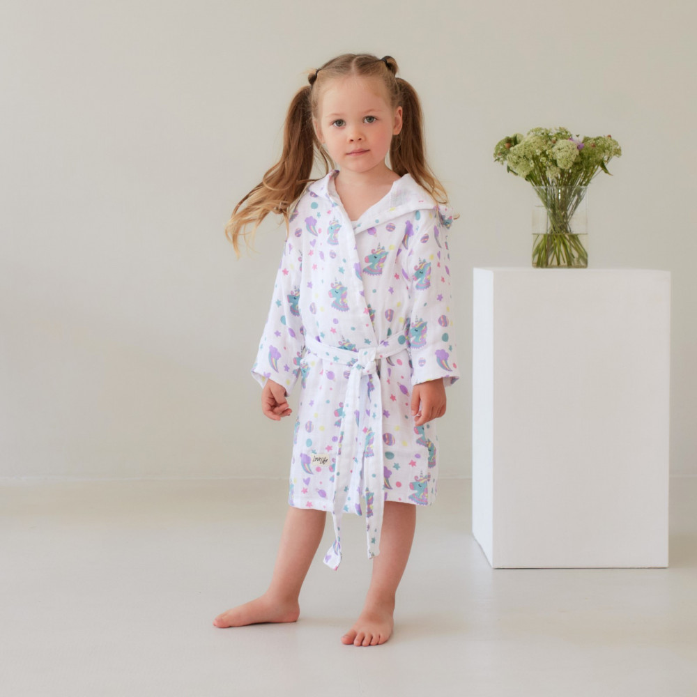 LoveLife Халат для девочек муслиновый «Единороги»