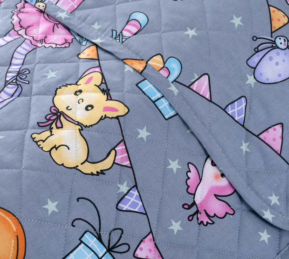 Роскошное стеганое покрывало на кровать с оригинальным рисунком станет украшением любой спальни. Покрывало двухстороннее — можно переворачивать под настроение! Ткань верха из плотного перкаля — матовая, легкая, приятная на ощупь. В составе только 100% хлопок. Активные красители на 100% безопасные и стойкие: цвета не потускнеют даже после множества стирок. Подходит владельцам домашних питомцев: на покрывале не остается зацепок.