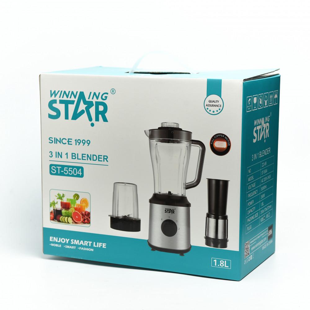 Winning Star Блендер 3 в 1 ST-5504В данный момент этот товар отсутствует в продаже. Возможно, у нас найдется аналогичный или похожий товар здесь. Погрузитесь в мир здорового питания с мощным блендером Winning Star! Блендер для смузи и коктейлей, универсальный кухонный помощник оснащен медным мотором на 500 Вт, позволяя легко приготовить смузи, коктейли, соусы, и измельчить продукты. Благодаря прочным лезвиям из нержавеющей стали и поликарбонатной чаше на 1,8 литра, ваши блюда всегда будут на высшем уровне. Блендер для смузи — это многофункциональное устройство, которое сочетает в себе блендер и измельчитель.  |