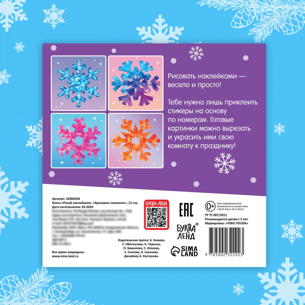 Рисуй наклейками. Красивые снежинкиВ данный момент этот товар отсутствует в продаже. Возможно, у нас найдется аналогичный или похожий товар здесь. Серия: Новогодние книги Буква-Ленд О картинах по номерам наверняка слышал каждый. А знаете ли вы о существовании картин из наклеек? Создайте вместе с ребёнком шедевр своими руками быстро и без хлопот. Каждый элемент картины — это яркая наклейка, которую легко наклеить на специальное место. |