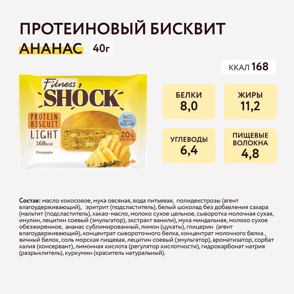 FitnesShock Бисквит неглазированный протеиновый Protein Biscuit Light «Ананас»
