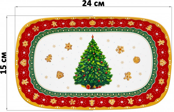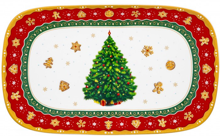 Прямоугольное блюдо Elan Gallery выполнено из фарфора нового поколения new bone china. Благодаря современным технологиям он не уступает другим видам фарфора в прочности, но при этом экологичнее в производстве. Дизайнерская коллекция посуды от бренда Elan Gallery украшена изображением пушистой ёлочки и узором из имбирных пряников и снежинок. Она создаст в вашем доме атмосферу волшебства и подарит праздничное настроение.