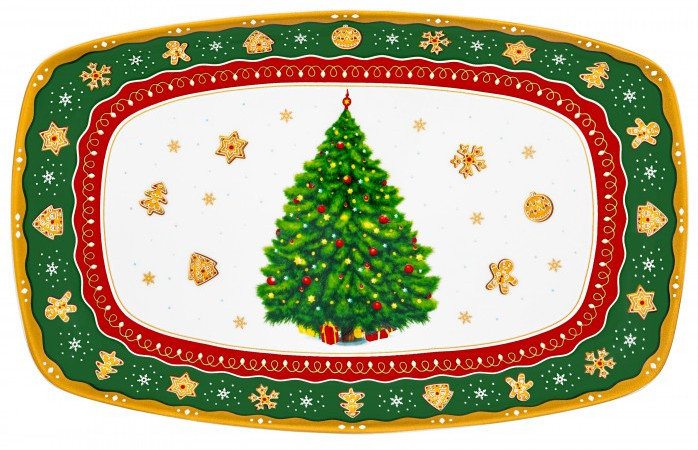 Прямоугольное блюдо Elan Gallery выполнено из фарфора нового поколения new bone china. Благодаря современным технологиям он не уступает другим видам фарфора в прочности, но при этом экологичнее в производстве. Дизайнерская коллекция посуды от бренда Elan Gallery украшена изображением пушистой ёлочки и узором из имбирных пряников и снежинок. Она создаст в вашем доме атмосферу волшебства и подарит праздничное настроение.