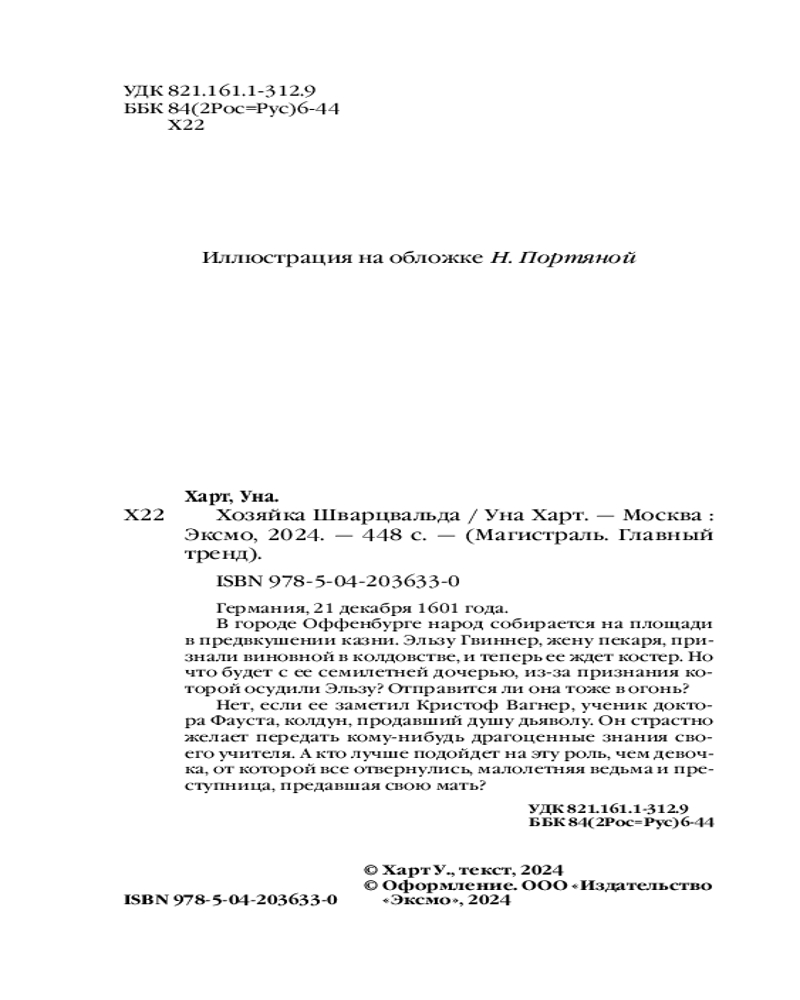 💳 Оплатить за товар можно при получении 🇰🇿 Есть бесплатная доставка по Казахстану от 1 дня 🎁 Копите бонусы с каждой покупки Серия: Магистраль. Главный тренд Германия, 21 декабря 1601 года. В городе Оффенбурге народ собирается на площади в предвкушении казни. Эльзу Гвиннер, жену пекаря, признали виновной в колдовстве, и теперь ее ждет костер. Но что будет с ее семилетней дочерью, из-за признания которой осудили Эльзу? Отправится ли она тоже в огонь? Нет, если ее заметил Кристоф Вагнер, ученик доктора Фауста, колдун, продавший душу дьяволу. Он страстно желает передать кому-нибудь драгоценные знания своего учителя. А кто лучше подойдет на эту роль, чем девочка, от которой все отвернулись, малолетняя ведьма и преступница, предавшая свою мать? |