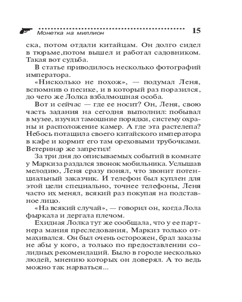 💳 Оплатить за товар можно при получении 🇰🇿 Есть бесплатная доставка по Казахстану от 1 дня 🎁 Копите бонусы с каждой покупки Серия: Смешные детективы. Новое оформление (обложка) Отобрать самое дорогое, например, деньги, умеют многие. Но только благородные жулики отнимают их у тех, кого в самом деле не жалко, — у других жуликов, неблагородных и несимпатичных. Выдающийся мастер Леня Маркиз, верный ученик Остапа Бендера, совсем не собирался отбирать у коллекционера Осетровского все. Ему и нужна-то всего одна монета, и даже не очень редкая. Только кто же знал, что из-за китайской копейки поднимется такое — вот-вот бахнет «Аврора» и разразится большой дипломатический скандал. Но и с делами такого масштаба справятся Леня Маркиз и его несравненная помощница Лола. |