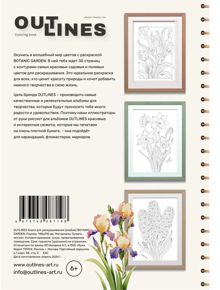 Outlines Раскраска «Botanic garden»В данный момент этот товар отсутствует в продаже. Возможно, у нас найдется аналогичный или похожий товар здесь. Раскраска Botanic Garden с контурами садовых и полевых цветов – ещё одно достойное дополнение к вашей коллекции раскрасок OUTLINES. Раскрасьте люббимые цветы по своему вкусу или по нашим примерам. Черпайте вдохновение для раскрашивания и творчества в самой природе. Это идеальная раскраска для всех, кто ценит красоту природы и хочет добавить немного творчества в повседневную жизнь. Раскрашивание – отличный способ снять стресс и расслаиться, побыть наедине с собой. Не обязательно быть талантливым художником, чтобы делать своими руками что-то красивое. Можно начать с малого! В раскраске блокноте Botanic Garden 30 листов с контурами красивых полевых и садовых цветов, напечатанных с одной стороны листа. Бумага очень плотная (190 гр/м2), раскрашивать можно карандашами, фломастерами и даже спиртовыми маркерами (не забудьте подложить дополнительный лист под контур). Яркая плотная обложка софт-тач с лаковыми элементами делает раскраску очень приятной на ощупь. Вы гордимся высоким качеством нашей продукции |