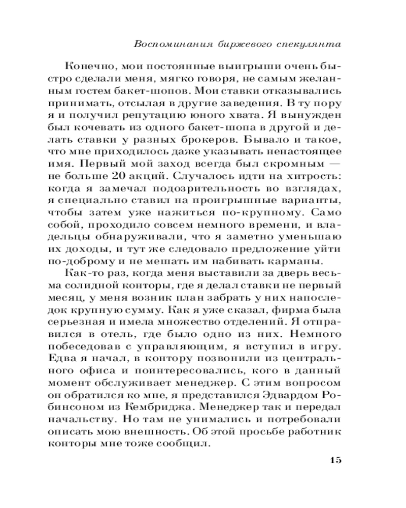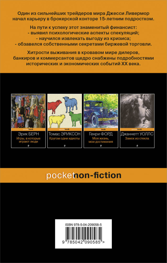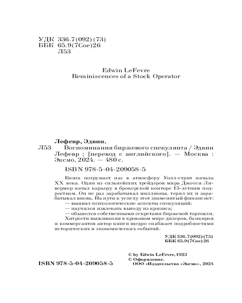 💳 Оплатить за товар можно при получении 🇰🇿 Есть бесплатная доставка по Казахстану от 1 дня 🎁 Копите бонусы с каждой покупки Серия: Pocket book (обложка). Non-fiction История, актуальная уже более 100 лет! Книга погружает нас в атмосферу Уолл-стрит начала XX века. Один из сильнейших трейдеров мира Джесси Ливермор начал карьеру в брокерской конторе 15-летним подростком. Он не раз зарабатывал миллионы, терял их и зарабатывал вновь. Хитрости выживания в кровавом мире дилеров, банкиров и коммерсантов автор книги щедро снабжает подробностями исторических и экономических событий. «Воспоминания биржевого спекулянта» — важнейшая книга в жизни любого трейдера! |