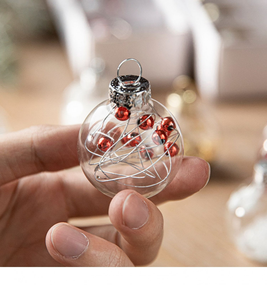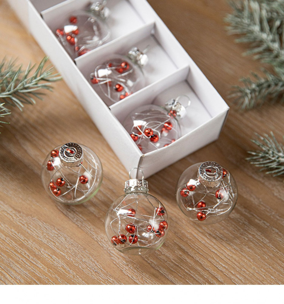 шарики заполнены кристаликами снега с вкраплениями красных ягодок на веточке,рекомендую