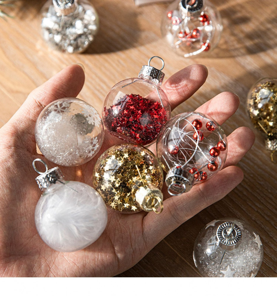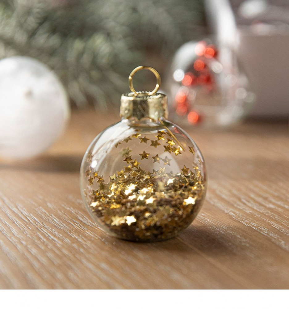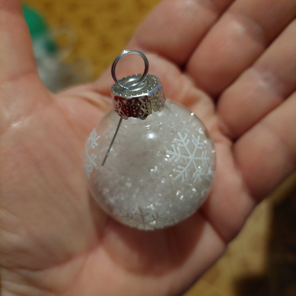 шарики заполнены кристаликами снега с вкраплениями красных ягодок на веточке,рекомендую
