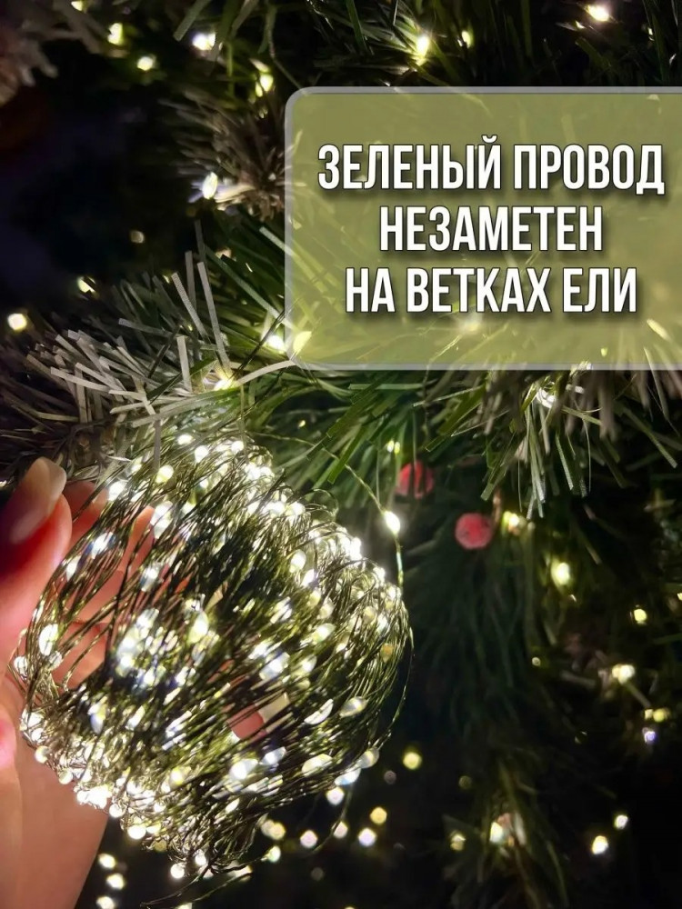 20 м гирлянды хватило на 2-х метровую елку, все очень понравилось, смотрится очень нежно