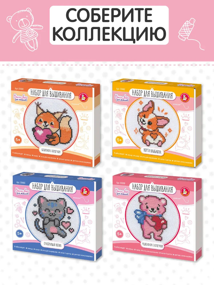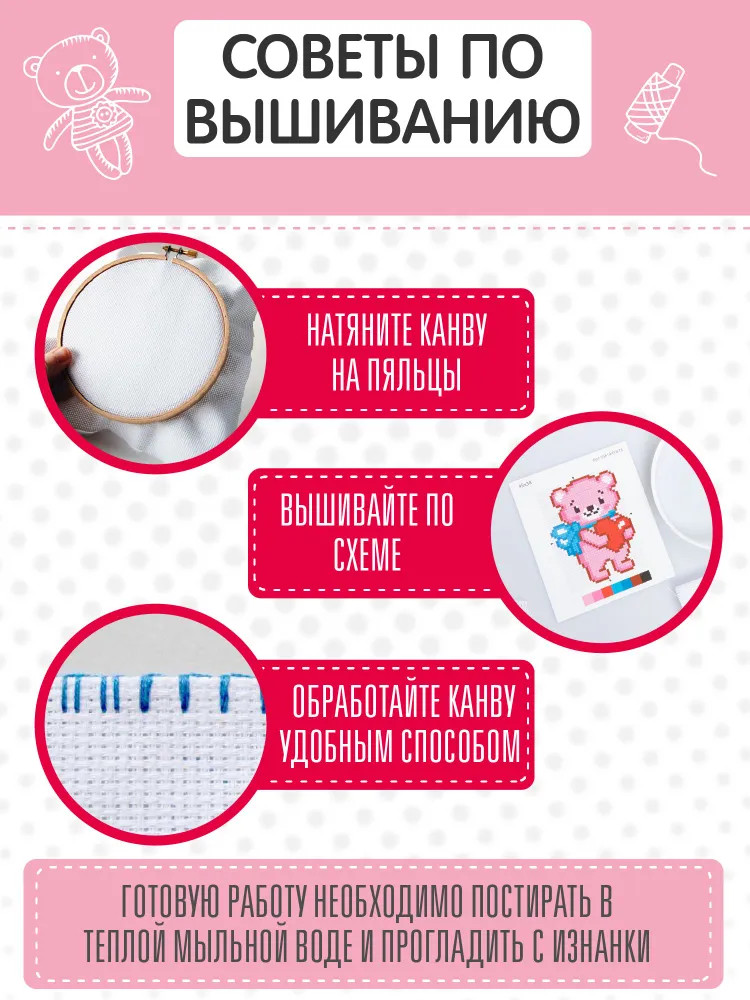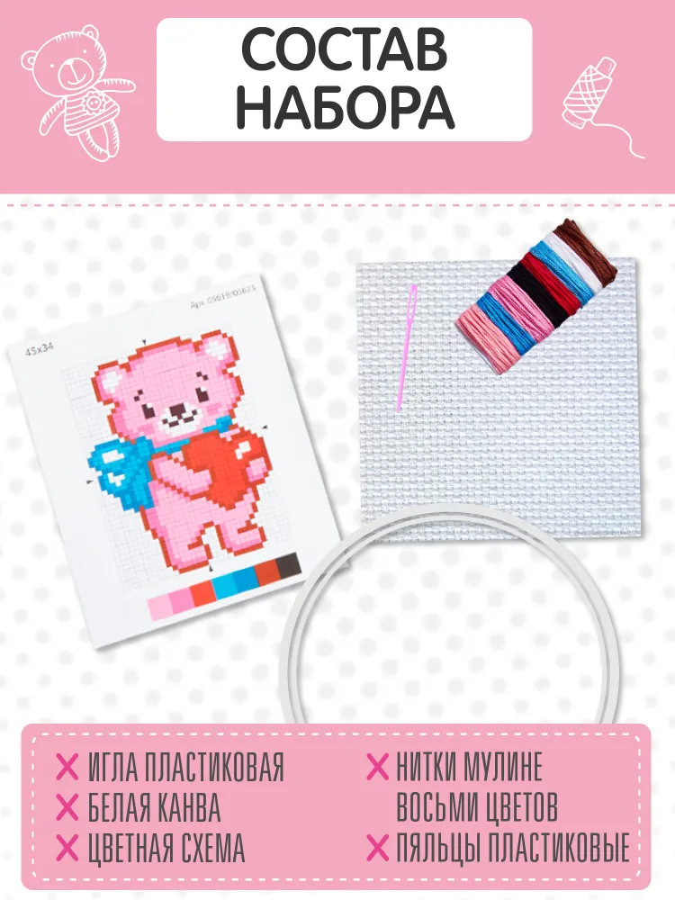 💳 Оплатить за товар можно при получении 🇰🇿 Есть бесплатная доставка по Казахстану от 1 дня 🎁 Копите бонусы с каждой покупки С Набором для вышивки «Медвежонок с сердечком» вы подарите незабываемые минуты творчества любителям рукоделия. А симпатичный персонаж порадует ребенка и станет замечательным подарком для друзей и близких. Процесс вышивания развивает мелкую моторику, воображение, творческое и логическое мышление. |