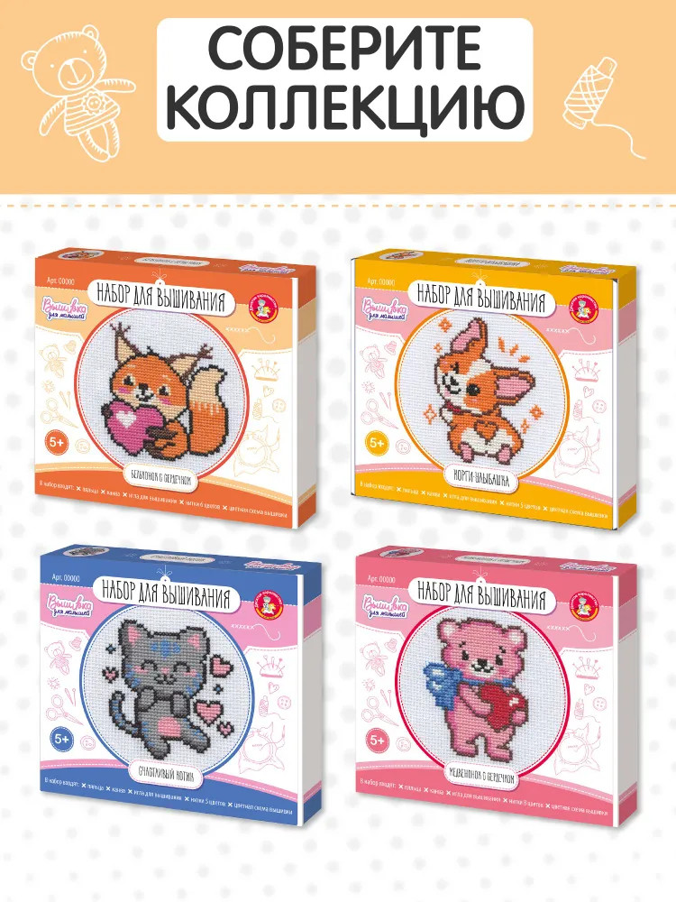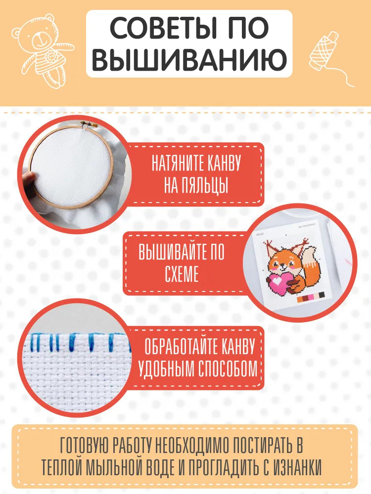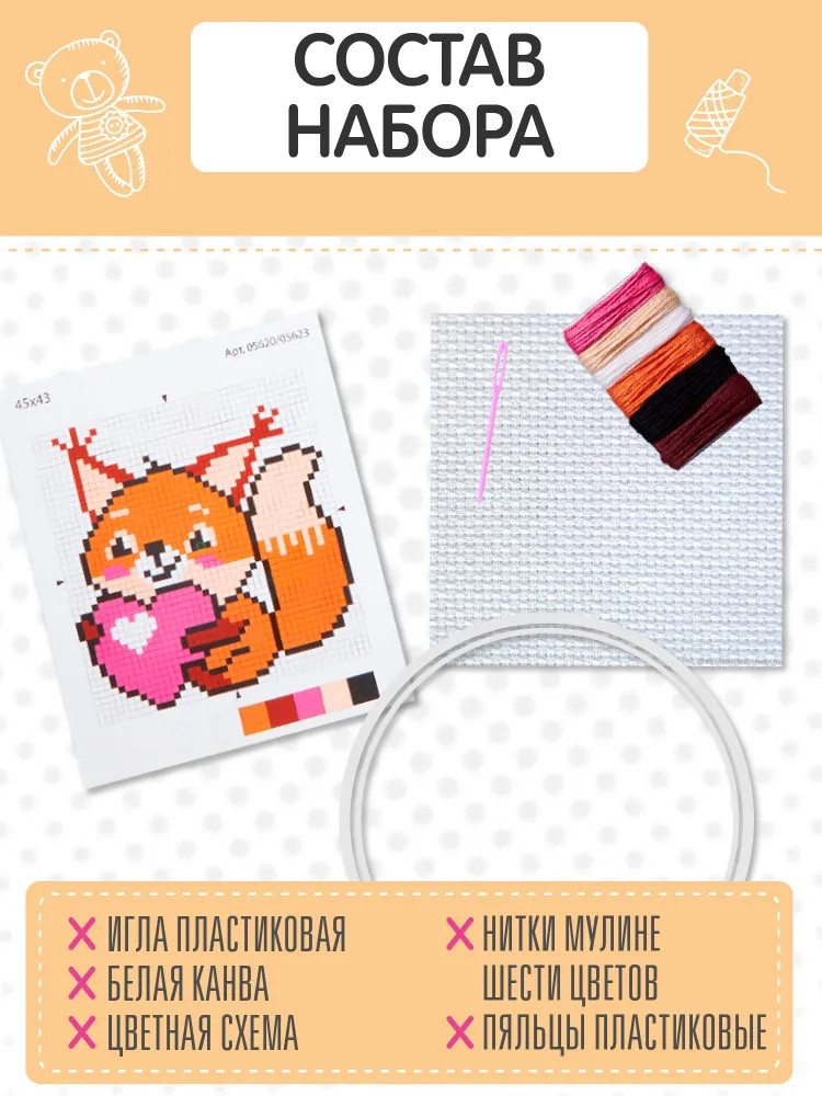💳 Оплатить за товар можно при получении 🇰🇿 Есть бесплатная доставка по Казахстану от 1 дня 🎁 Копите бонусы с каждой покупки Набор для вышивки «Бельчонок с сердечком» — замечательный подарок для любителей рукоделия. С его помощью вы подарите незабываемые минуты творчества. Милый персонаж порадует ребенка и станет замечательным подарком для друзей и близких. Процесс вышивания развивает мелкую моторику, воображение, творческое и логическое мышление. |
