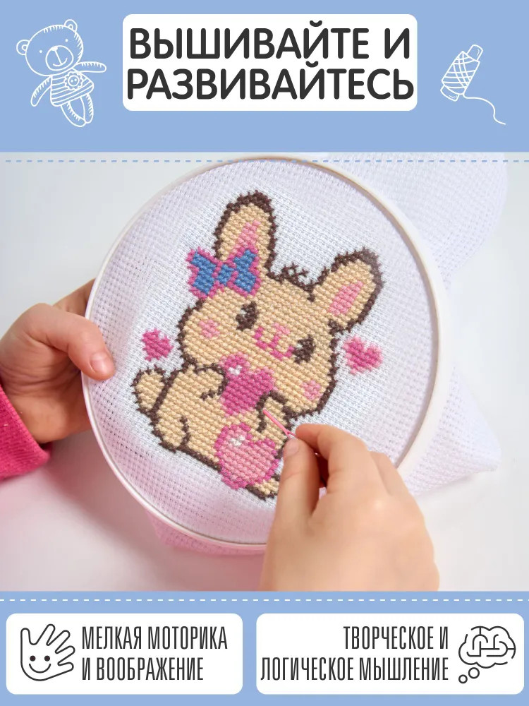 💳 Оплатить за товар можно при получении 🇰🇿 Есть бесплатная доставка по Казахстану от 1 дня 🎁 Копите бонусы с каждой покупки С Набором для вышивки «Зайчишка с сердечком» вы подарите незабываемые минуты творчества любителям рукоделия. А симпатичный персонаж порадует ребенка и украсит интерьер детской комнаты. Процесс вышивания развивает мелкую моторику, воображение, творческое и логическое мышление. |