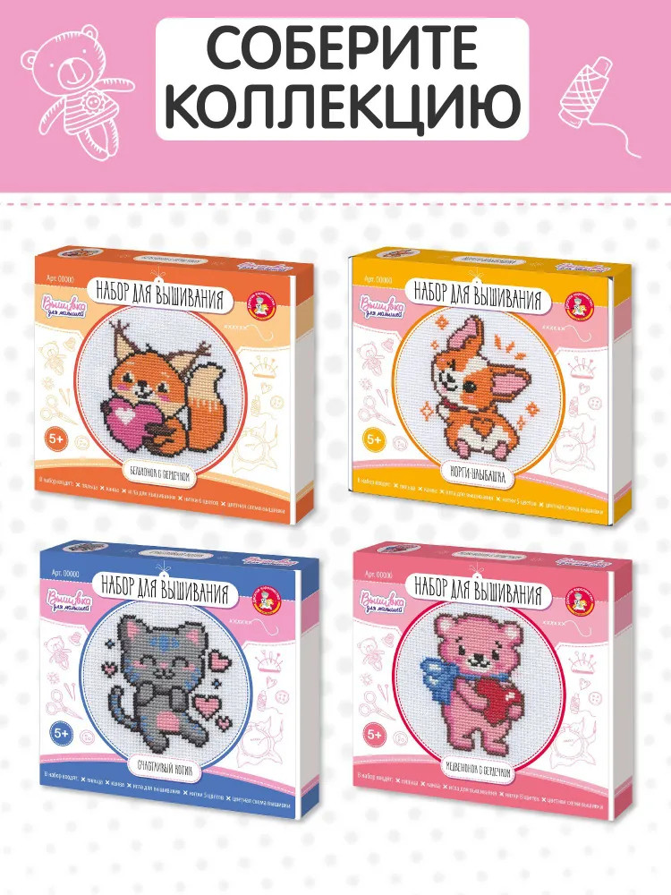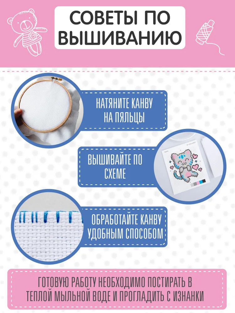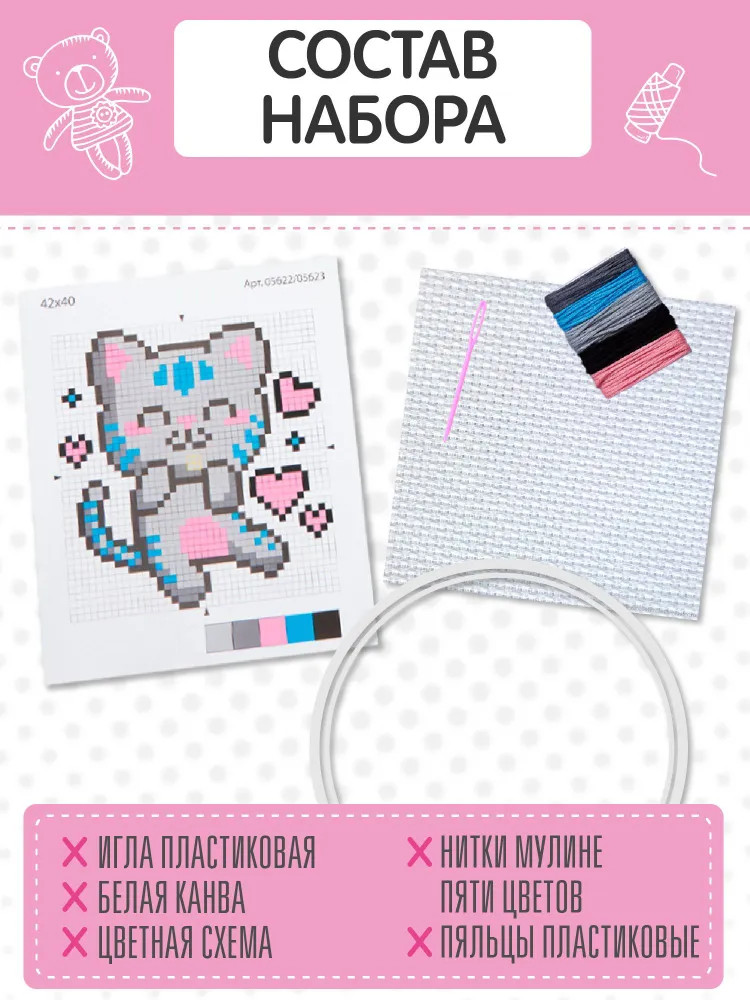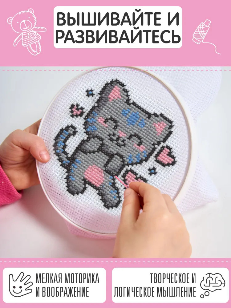 💳 Оплатить за товар можно при получении 🇰🇿 Есть бесплатная доставка по Казахстану 🎁 Копите бонусы с каждой покупки Набор для вышивки «Счастливый котик» — это возможность проявить свои творческие способности и вышить симпатичного котика, который станет замечательным подарком близким или украсит интерьер детской комнаты. Процесс вышивания развивает мелкую моторику, воображение, творческое и логическое мышление. |