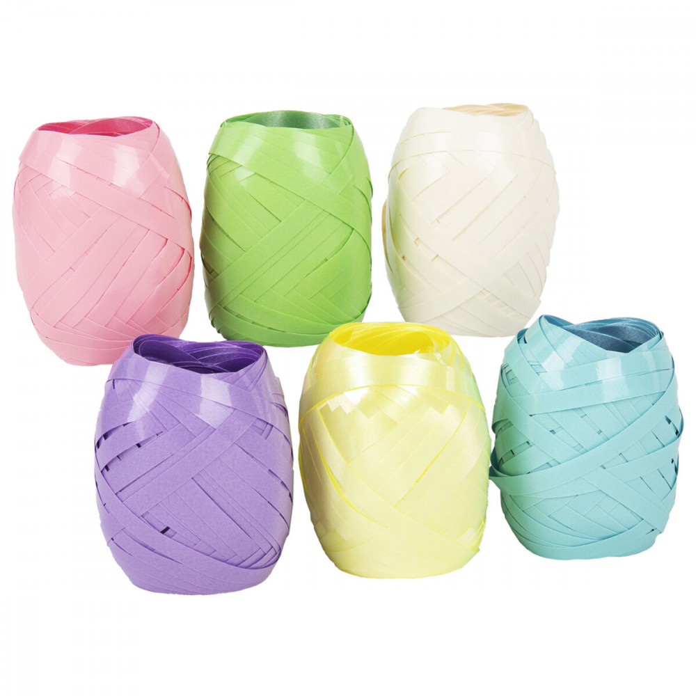 Набор состоит из 6-ти лент шириной 5 мм и длиной 10 м каждая. Ленты изготовлены из прочного полипропилена (70%), полиэтилена (15%) и полиэтилентерефталата (15%). Толщина лент 130 мкм (0,13 мм). Ленты представлены в шести цветах с глянцевым эффектом: голубой, бежевый, желтый, салатовый, розовый, нежно-фиолетовый. Ленты упакованы в прозрачный пакет с картонным подвесом, на обратной стороне которого представлена краткая информация о товаре.