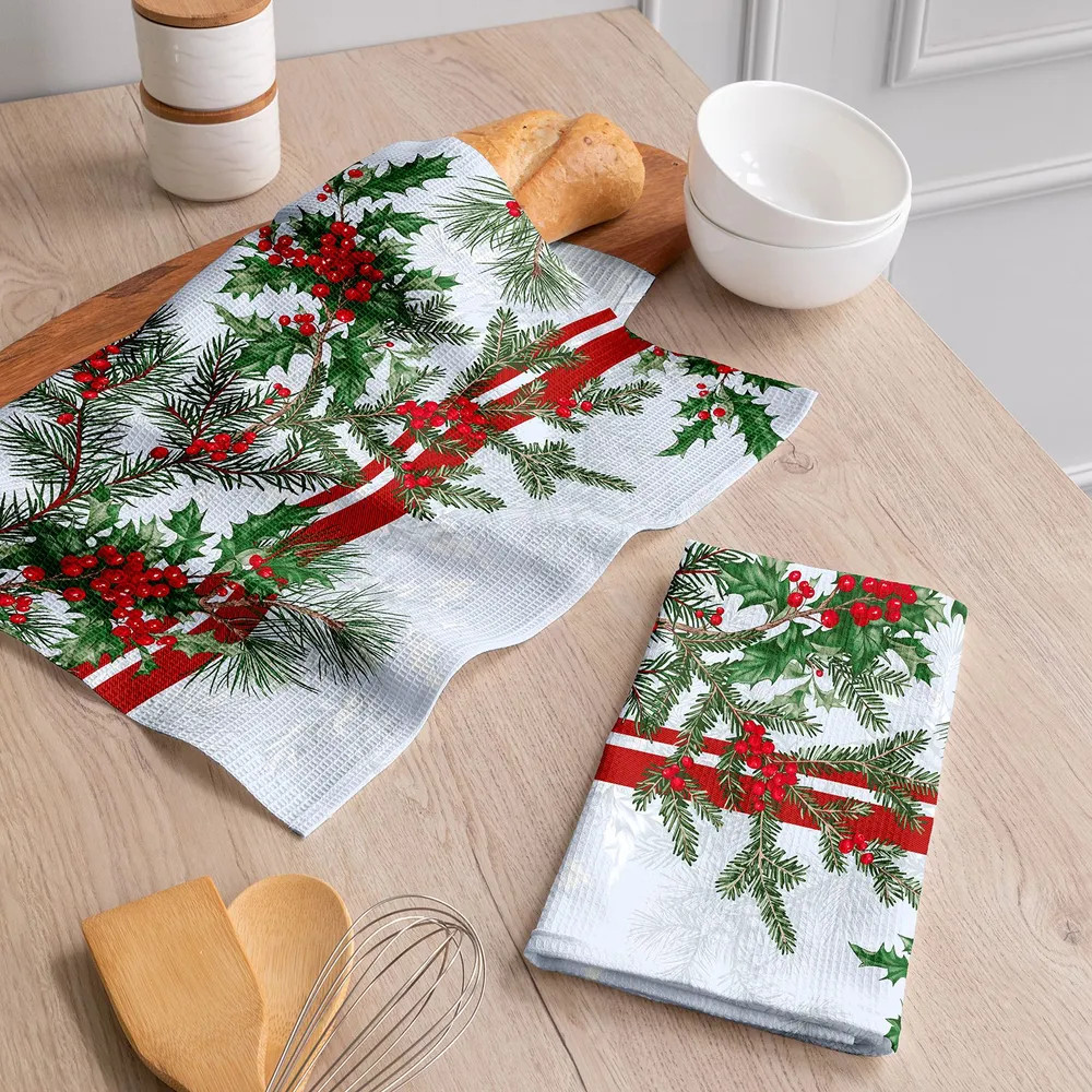 качество без недостатков классные В данный момент этот товар отсутствует в продаже. Возможно, у нас найдется аналогичный или похожий товар здесь. Серия: Natale Обновите интерьер вашей кухни с помощью набора полотенец «Mia Cara» в оригинальном дизайне. Этот комплект состоит из двух прекрасных кухонных полотенец размером 50×70 см, которые идеально впишутся в любую кухонную обстановку, придавая ей уют и стиль. Удобный размер делает эти полотенца универсальными для использования как в процессе приготовления пищи, так и в уборке после. Полотенца изготовлены из качественного материала, который обеспечивает отличное впитывание и долговечность. Их можно использовать для различных нужд: от вытирания рук после мытья до протирания посуды. Вафельная текстура полотенец обеспечивает дополнительные преимущества, такие как быстросохнущие свойства и легкость в уходе.