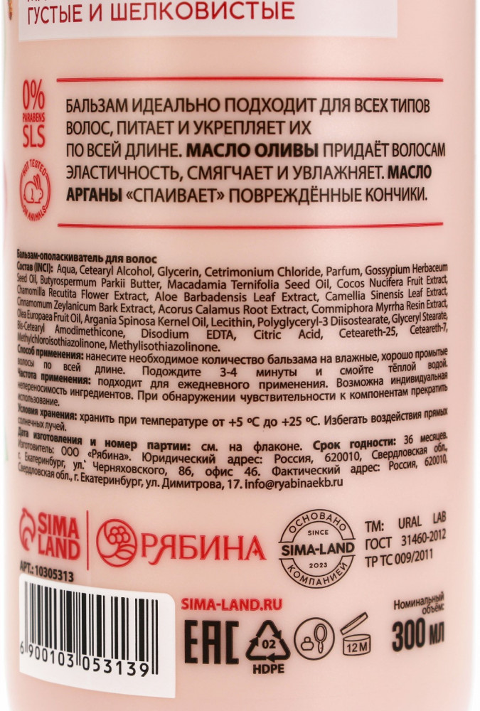 Ural lab Бальзам для волос «Густые и шелковистые»