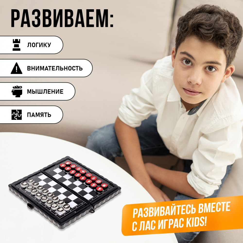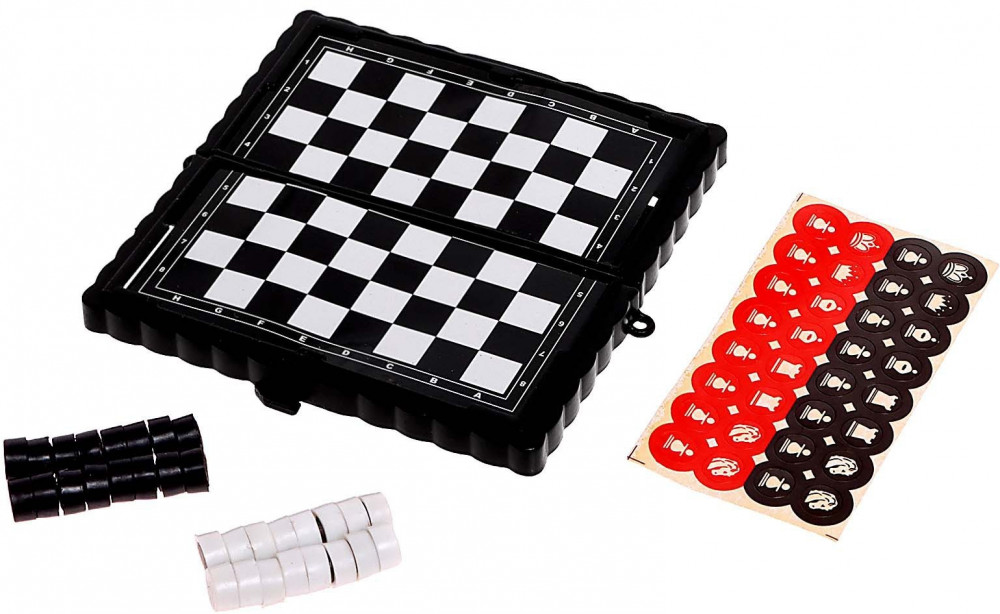 Компактная версия настольной игры для самых азартных. Этот игровой набор идеально подойдёт для путешественников и ценителей классических игр, потому что внутри сразу две любимые игры: шашки и шахматы. Пластиковая коробка удобная и компактная, в ней удобно хранить все фишки.