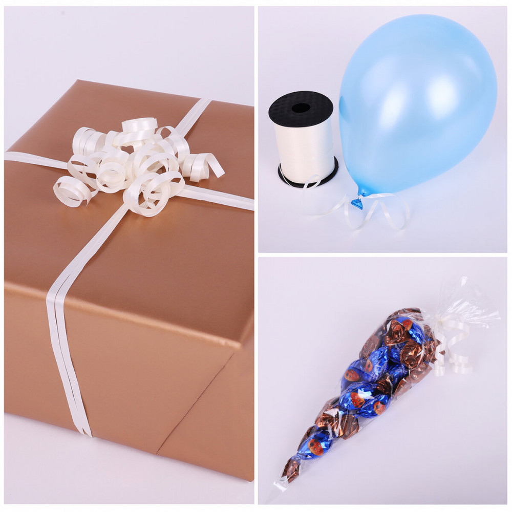 Декоративная упаковочная лента станет универсальным помощником в организации праздника: с ее помощью можно завязать воздушные шары, оригинально украсить подарок, а также составить праздничную интерьерную композицию. Кроме того, декоративная лента поможет красиво и ярко украсить кондитерские наборы, сладкие подарки, а также будет незаменима во флористике для оформления букетов и в рукоделии в процессе создания поделок или любых других творческих композиций.