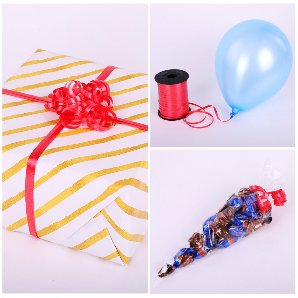 Декоративная упаковочная лента станет универсальным помощником в организации праздника: с ее помощью можно завязать воздушные шары, оригинально украсить подарок, а также составить праздничную интерьерную композицию. Кроме того, декоративная лента поможет красиво и ярко украсить кондитерские наборы, сладкие подарки, а также будет незаменима во флористике для оформления букетов и в рукоделии в процессе создания поделок или любых других творческих композиций.