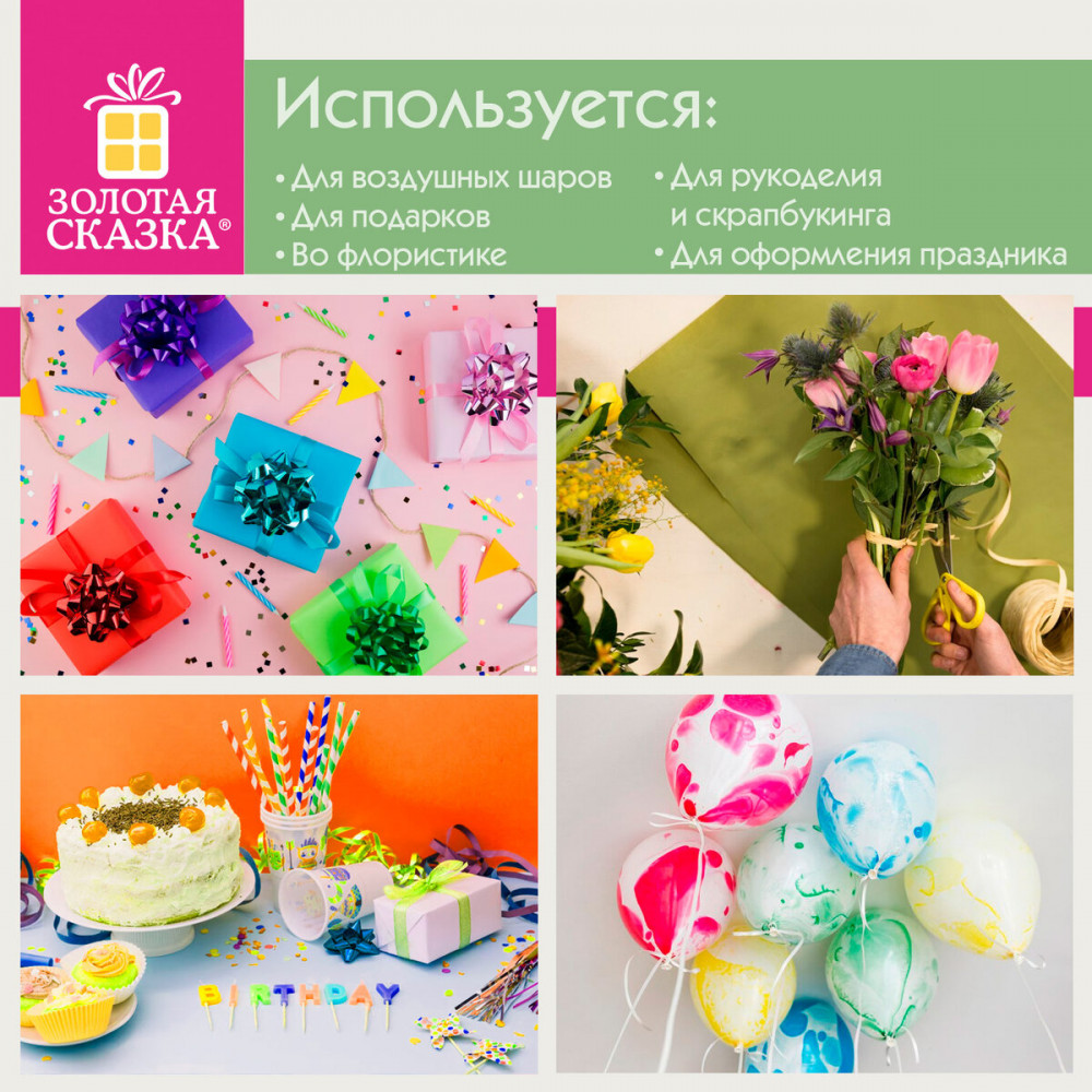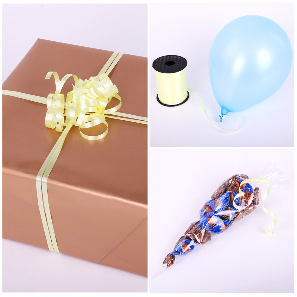 Декоративная упаковочная лента станет универсальным помощником в организации праздника: с ее помощью можно завязать воздушные шары, оригинально украсить подарок, а также составить праздничную интерьерную композицию. Кроме того, декоративная лента поможет красиво и ярко украсить кондитерские наборы, сладкие подарки, а также будет незаменима во флористике для оформления букетов и в рукоделии в процессе создания поделок или любых других творческих композиций.
