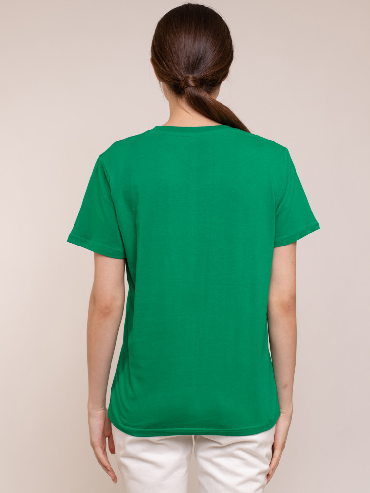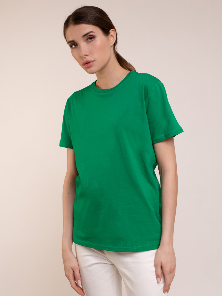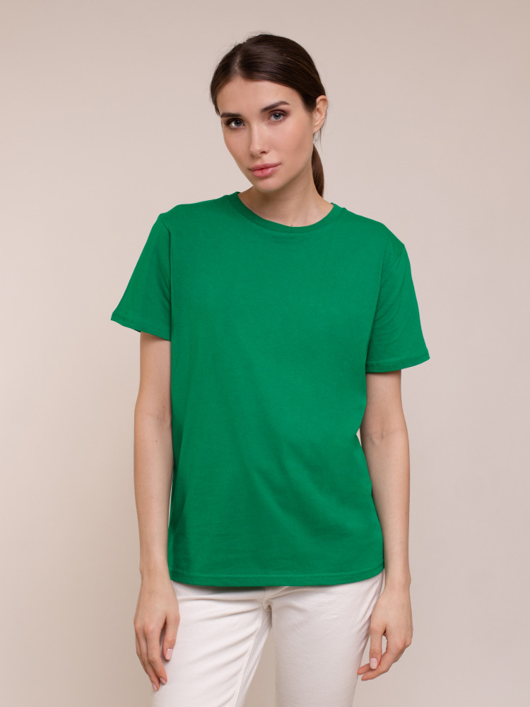Футболка 48 размера, рост 164, на 50 размер рост 160 свободная. Очень хороший пошив, аккуратный, горловина обработана отлично. Ткань плотная, трикотажная, мало тянущаяся. Фасон прямой, со спущенным плечом. Цвет не такой яркий, как на фотографии сайта, он именно песочный.