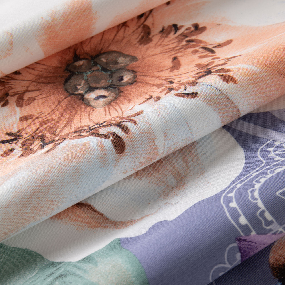 Расцветка цветы на любителя , качество отличное , смотрится не так ярко . Ткань плотная , после стирки не село , не растянулось . Пошив отличный . Рекомендую