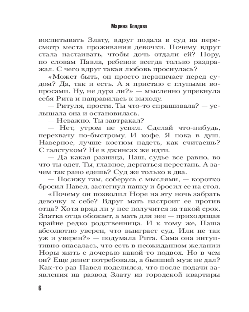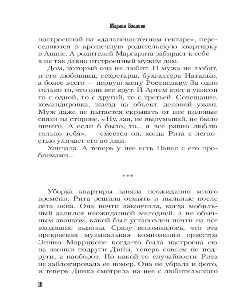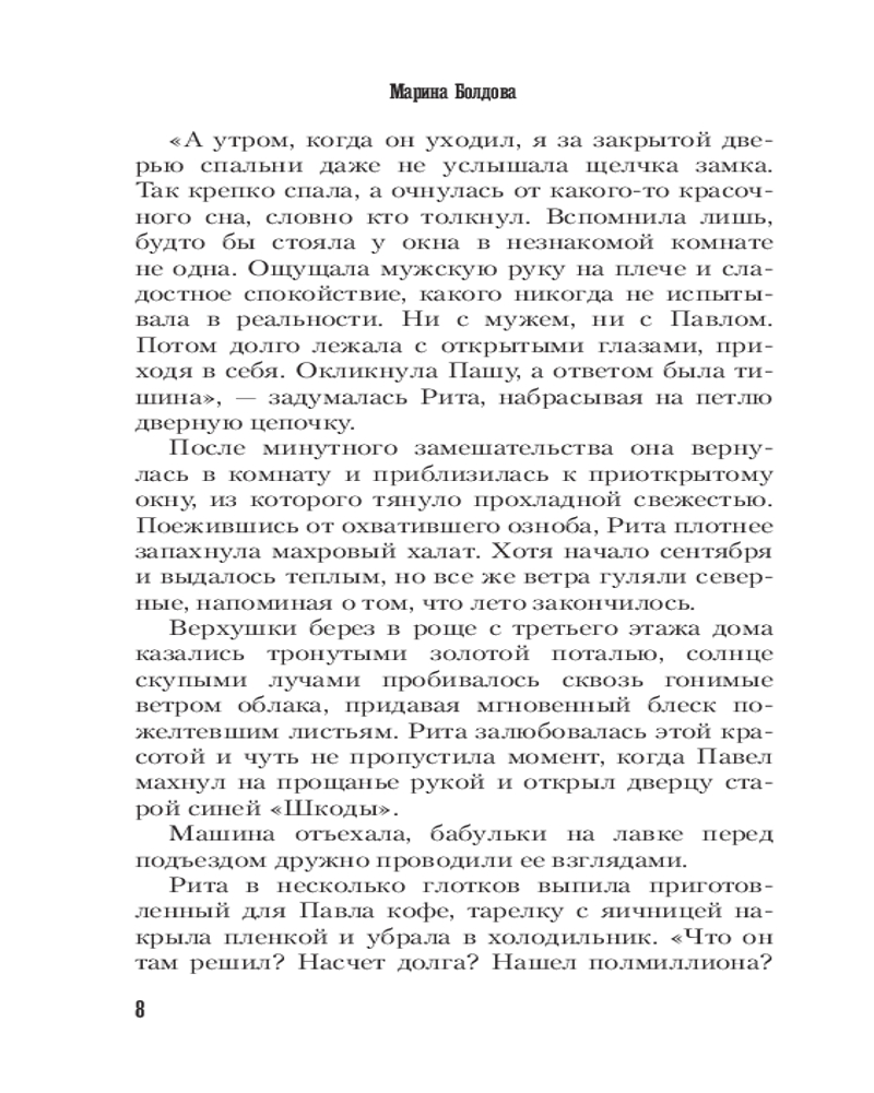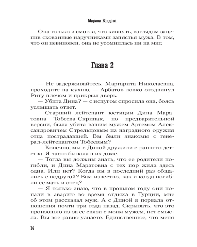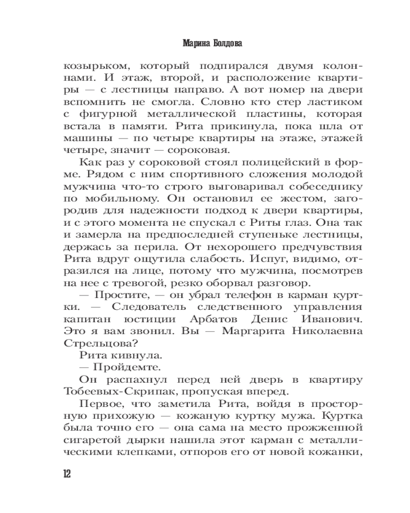 Тень от козырного тузаВ данный момент этот товар отсутствует в продаже. Возможно, у нас найдется аналогичный или похожий товар здесь. Серия: Семейный детектив Неужели для того, чтобы простить, нужно потерять? И чтобы очнуться от «спячки» в никому не нужном браке, получить привет с того света? А чтобы разобраться с новыми, вялотекущими отношениями с мужчиной, тот должен уйти из жизни? Два убийства за один день — бывшей подруги-предательницы и так и не ставшего близким друга. Прощальный подарок подруги, старые письма, странная записка, оставленная преступником на видном месте, возможно, все это поможет раскрыть преступление? А вдруг — оба? Даже если они на первый взгляд никак не связаны между собой. |