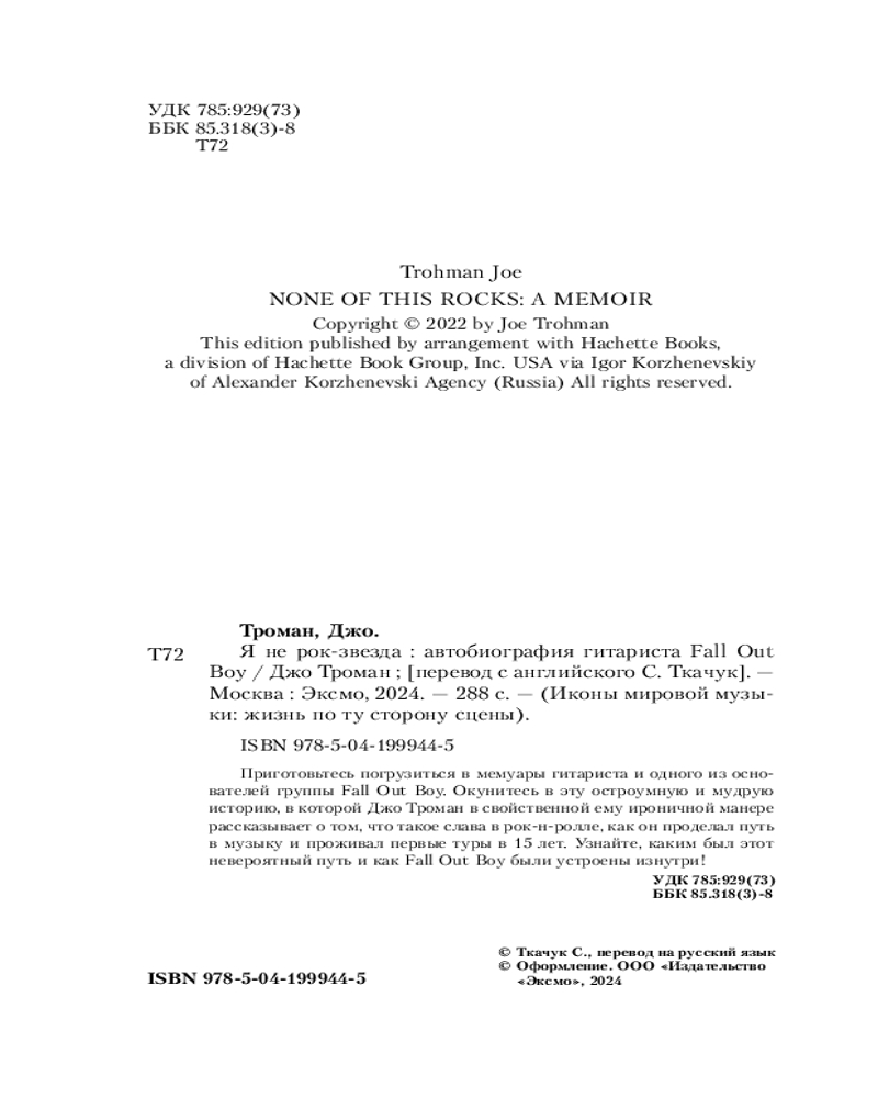 💳 Оплатить за товар можно при получении 🇰🇿 Есть бесплатная доставка по Казахстану от 1 дня 🎁 Копите бонусы с каждой покупки Серия: Иконы мировой музыки: жизнь по ту сторону сцены Приготовьтесь погрузиться в мемуары гитариста и одного из основателей группы Fall Out Boy! |