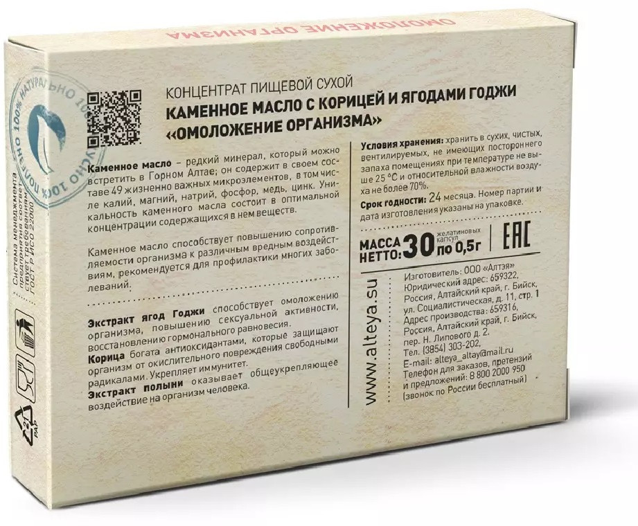 Алтэя Масло каменное с корицей и ягодами годжи «Омоложение организма»