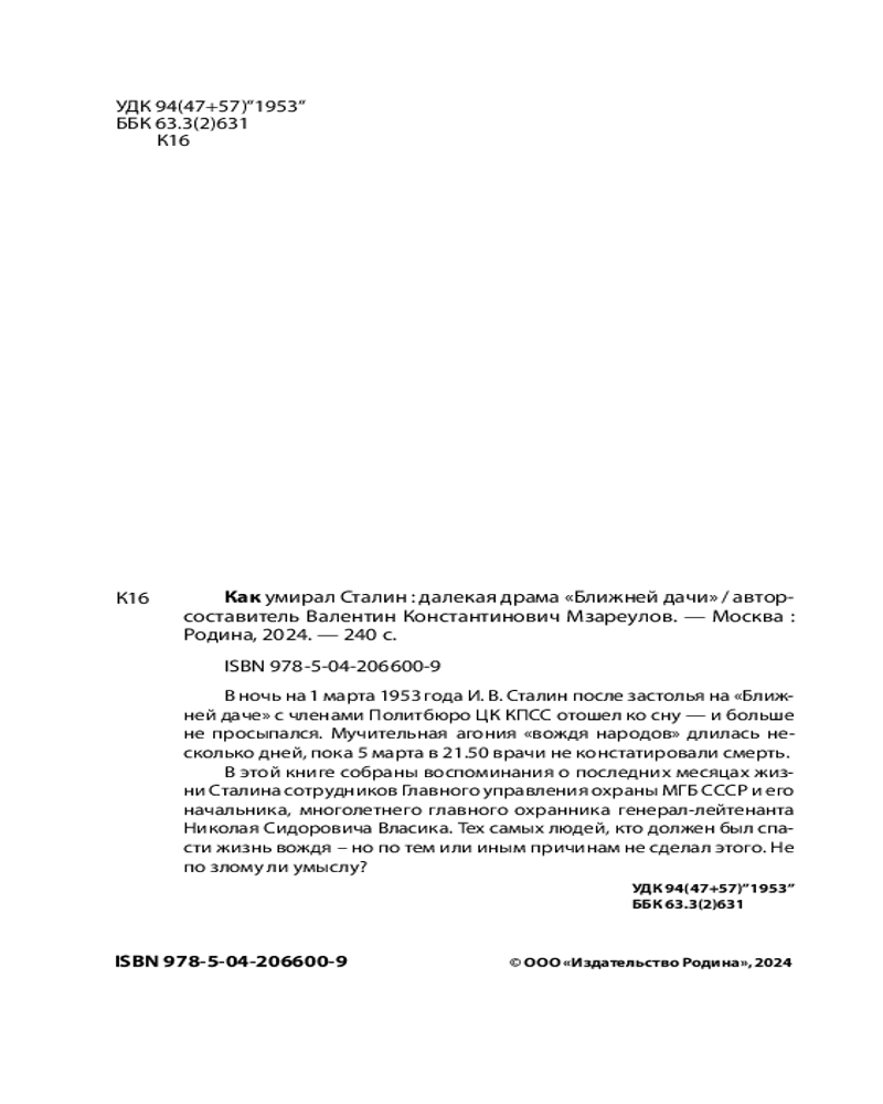 Как умирал Сталин. Далекая драма «Ближней дачи»Валентин Константинович Мзареулов +53