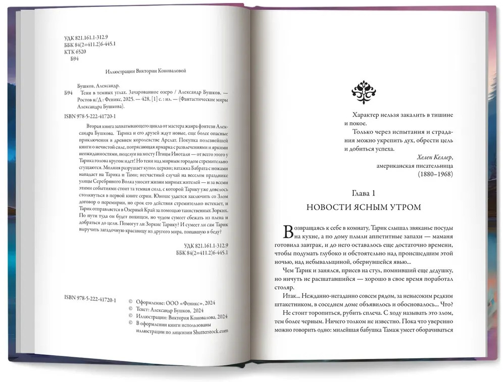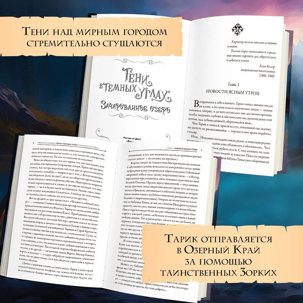 💳 Оплатить за товар можно при получении 🇰🇿 Есть бесплатная доставка по Казахстану от 1 дня 🎁 Копите бонусы с каждой покупки Серия: Фантастические миры Александра Бушкова Вторая книга захватывающего цикла от мастера жанра фэнтези Александра Бушкова. Тарика и его друзей ждут новые, еще более опасные приключения в древнем королевстве Арелат. Покупка полезнейшей книги о нечистой силе, потрясающая ярмарка с развлечениями и яркими неожиданностями, поцелуи на мосту Птицы Инотали — от всего этого у Тарика голова кругом идет! Но тени над мирным городом стремительно сгущаются. Молния разрушает купол церкви; ватажка Бабрата с ножами нападает на Тарика и Тами; несчастный случай на веселом празднике улицы Серебряного Волка уносит жизни мирных жителей — и за всеми этими событиями стоит та темная сила, с которой Тарику уже довелось столкнуться в первой книге серии. Юноше удается заключить со Злом договор о перемирии, но срок его действия стремительно истекает, и Тарик отправляется в Озерный Край за помощью таинственных Зорких. По пути туда он будет похищен, но чудом сумеет сбежать из плена и добраться до цели. Помогут ли Зоркие Тарику? И сумеет ли сам Тарик выручить загадочную красавицу из другого мира, попавшую в беду? |