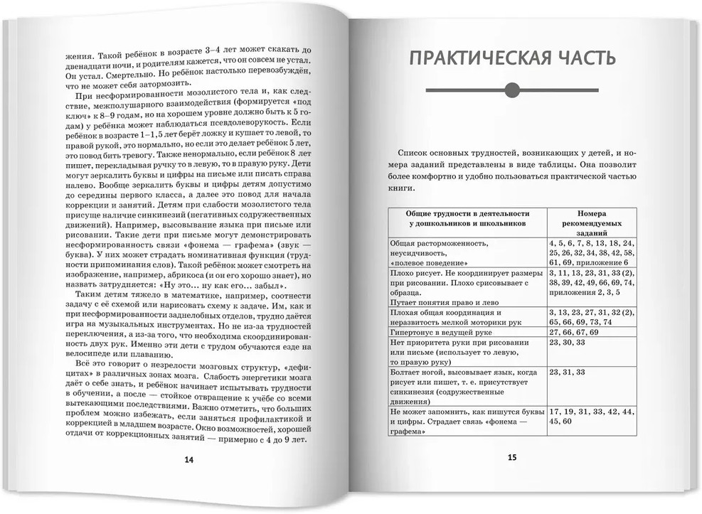 В пособии автор выделяет наиболее распространённые проблемы с чтением, письмом, счётом и общим психическим развитием ребёнка. Для каждого случая предлагаются специальные игры и упражнения. Это позволяет составить индивидуальный комплекс для каждого ребёнка.