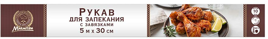 Способ применения: отрезать кусок рукава нужной длины с припуском 10 см с каждой стороны. Вложить подготовленные к запеканию продукты в рукав и закрыть его приложенными завязками. Положить заполненный и закрытый рукав в духовку и проколоть острым предметом в нескольких местах для выхода избыточного пара. Для образования поджаристой поверхности можно приоткрыть рукав незадолго до истечения времени запекания. Рекомендации по уходу: рукав не должен соприкасаться со стенками духовки. При использовании в микроволновых печах следует учесть соответствующие рекомендации этих печей. Максимальная жаростойкость — 230°С. Условия хранения: хранить в сухом, недоступном для детей месте, вдали от прямого солнечного света и нагревательных приборов.