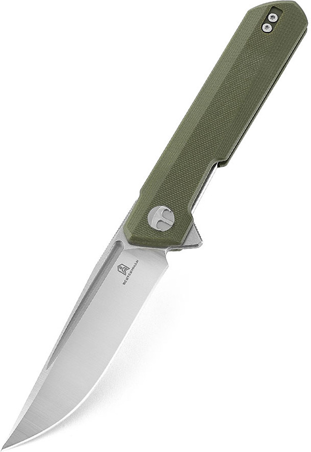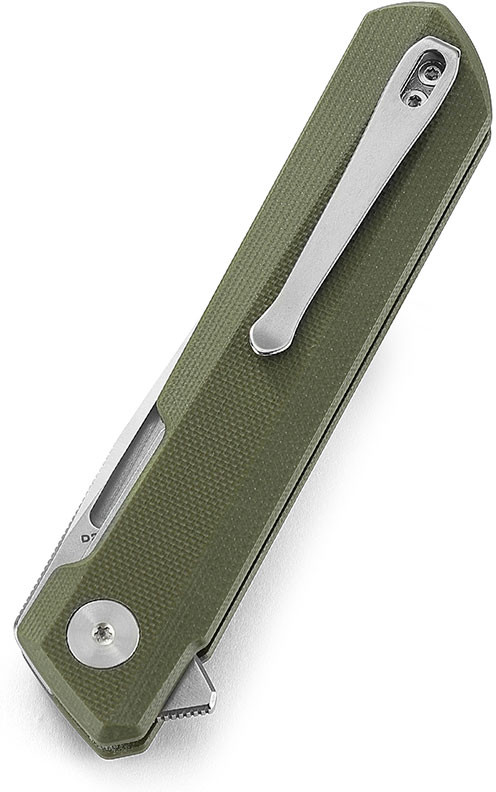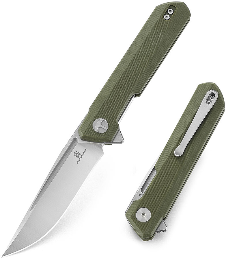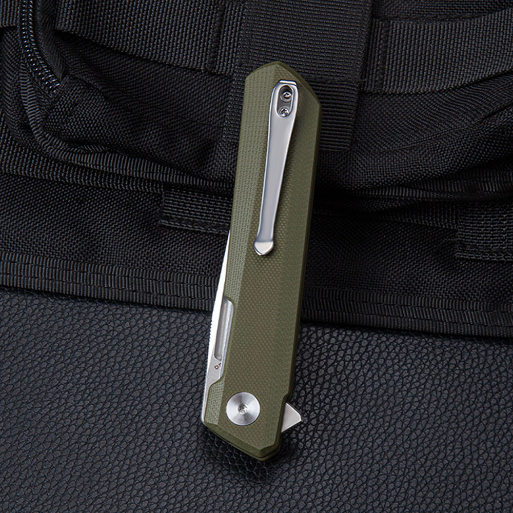 Рукоять Bestechman Dundee выполнена из материала G10 с шероховатой поверхностью, обеспечивающей надежный и комфортный хват. Это чрезвычайно прочный, влагонепроницаемый и ударостойкий композитный материал на основе стеклоткани и эпоксидной смолы. Рукоять также оснащена выемкой, которая в сочетании с флиппером формирует надежный подпальцевый упор. Это предотвращает соскальзывание руки на режущую кромку. На осевом узле установлены керамические шарикоподшипники, которые обеспечивают плавное и приятное раскрытие ножа. Замок типа Liner Lock фиксирует клинок в рабочем положении обеспечивая надежность и безопасность. Удобная клипса, переставляется на другую сторону рукояти, позволяя носить нож на ремне или в кармане.