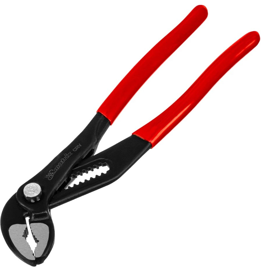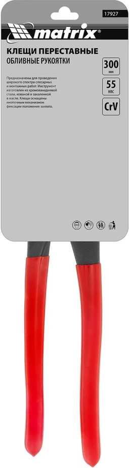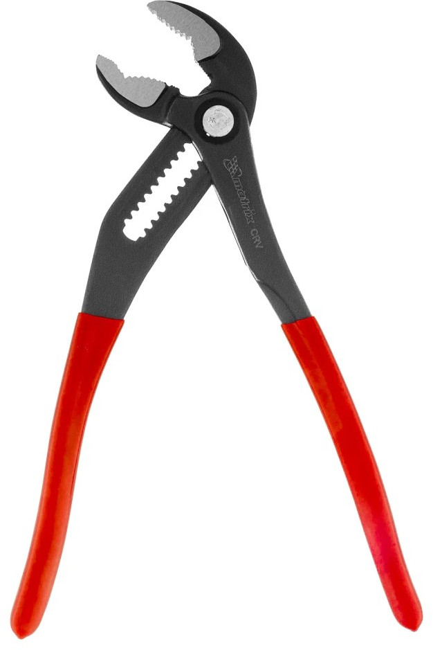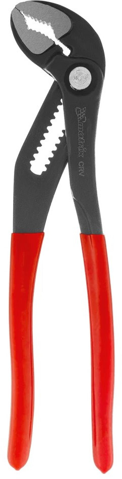 Переставные клещи Matrix выполненные из хромованадиевой стали, с кнопочным механизмом и обливными рукоятками, используются для проведения монтажных и слесарных работ. Универсальный инструмент заменяет ключи различных размеров и применяется для фиксации заготовок, откручивания гаек, зажима и удержания труб диаметром до 50 мм.