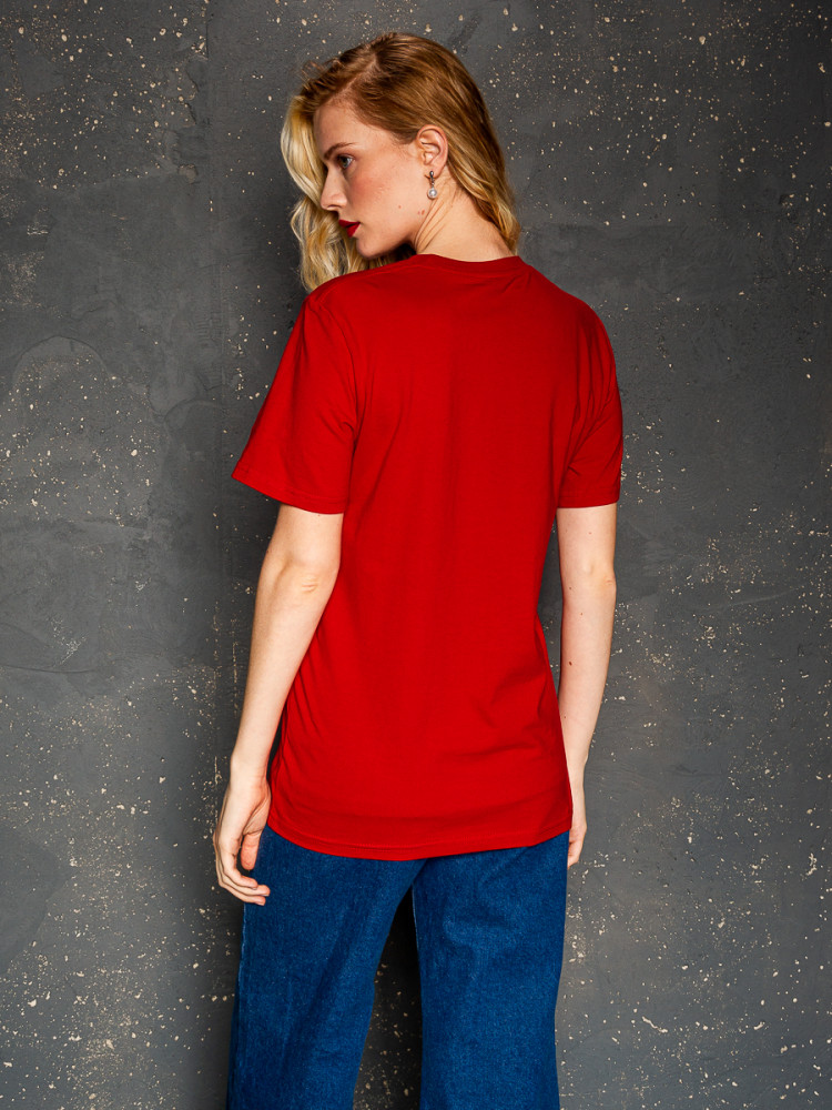Футболка 48 размера, рост 164, на 50 размер рост 160 свободная. Очень хороший пошив, аккуратный, горловина обработана отлично. Ткань плотная, трикотажная, мало тянущаяся. Фасон прямой, со спущенным плечом. Цвет не такой яркий, как на фотографии сайта, он именно песочный.