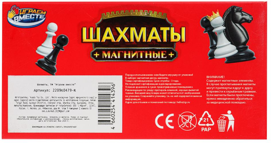 Играем вместе Игра настольная «Шахматы магнитные»-35% +66