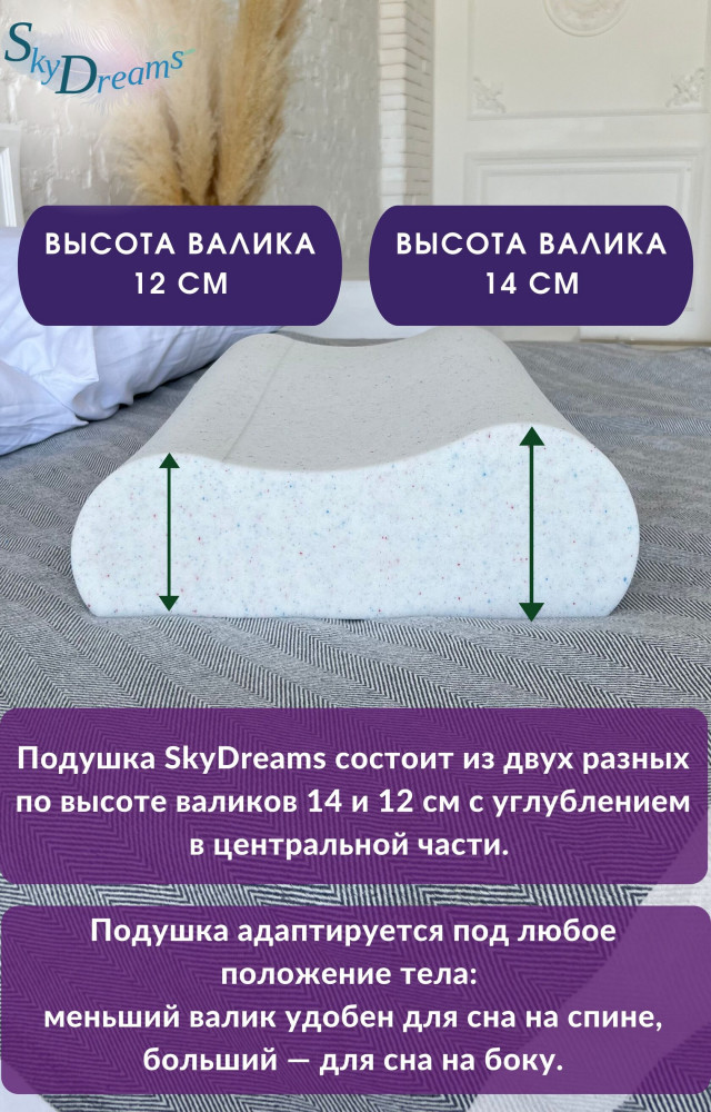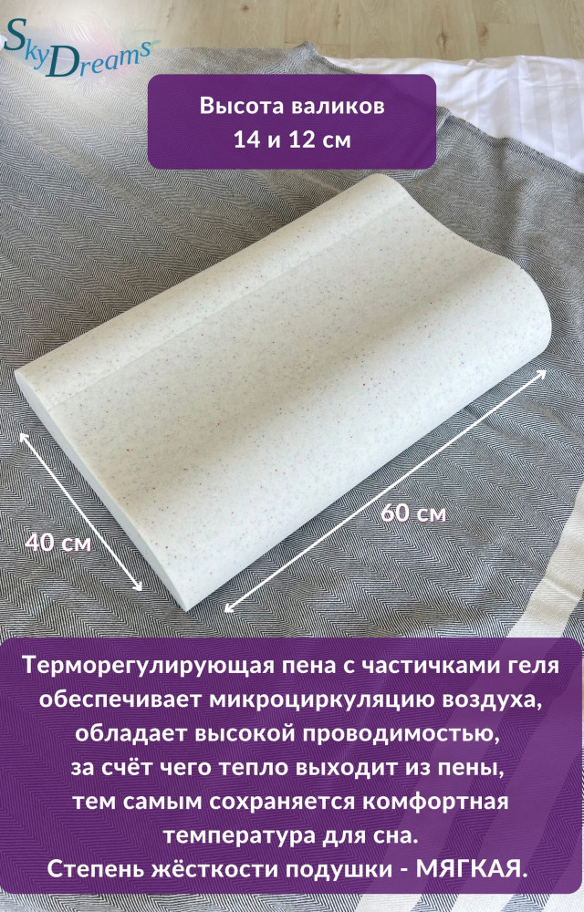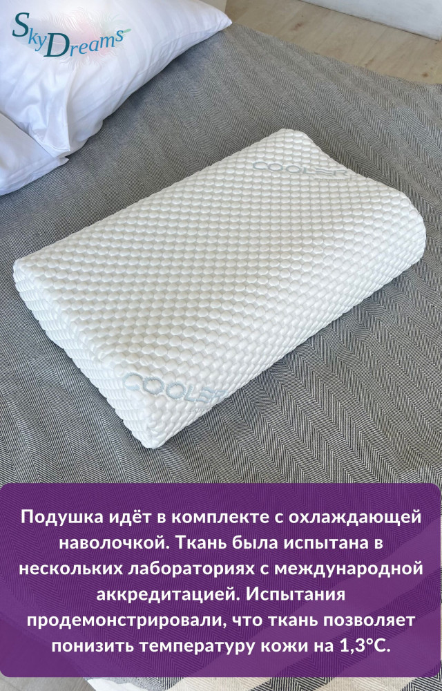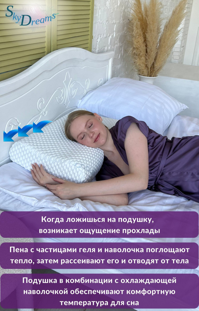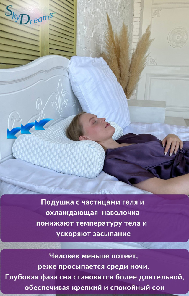 Основные преимущества ортопедических подушек SkyDreams с охлаждающим гелем: