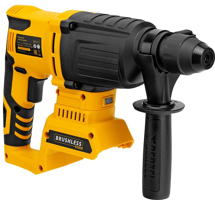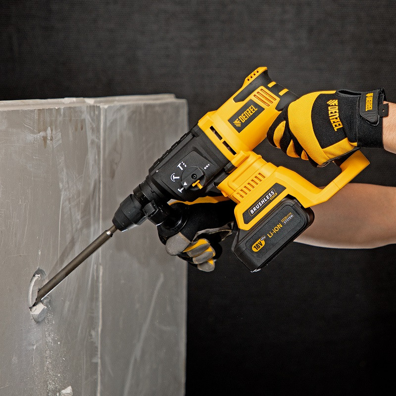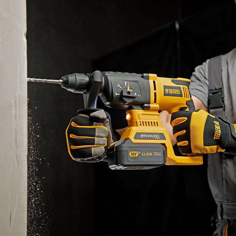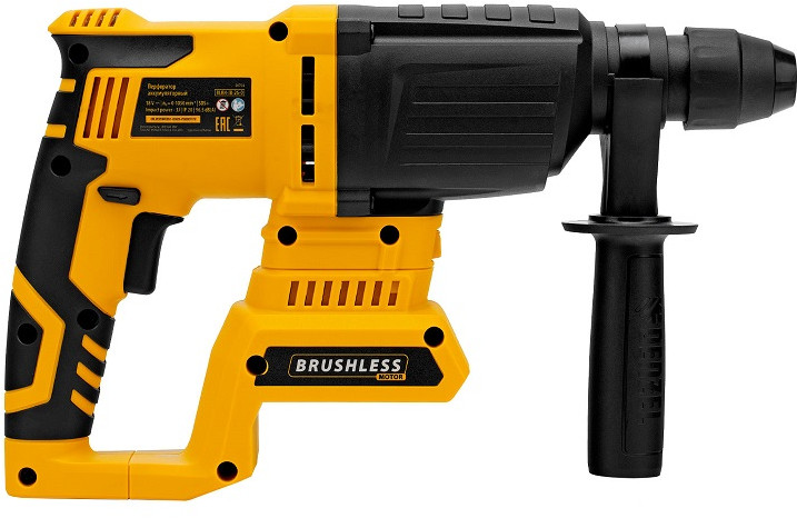 💳 Оплатить за товар можно при получении 🇰🇿 Есть бесплатная доставка по Казахстану от 1 дня 🎁 Копите бонусы с каждой покупки Аккумуляторный перфоратор Denzel BLRH-IB-26-0 26702 питается от аккумулятора Li-Ion увеличенной емкости с рабочим напряжением 18 В (не входит в комплект поставки). Предназначен для сверления отверстий в различных материалах, а также для штробления стен и разрушения кирпичной кладки. Предусмотрено 4 режима работы: сверление, бурение, долбление + регулировка положения долота (опция Vario Lock). Максимальный диаметр отверстий в древесине составляет 40 мм, металле — 13 мм, бетоне — 26 мм.; Инструмент совершает до 4800 ударов в минуту, развивая энергию до 3 Дж, чем обусловлена его высокая производительность и эффективная работа с твердыми материалами. Перфоратор пригодится для проведения строительных и ремонтных работ. В комплект поставки входит дополнительная рукоятка и ограничитель глубины сверления. |