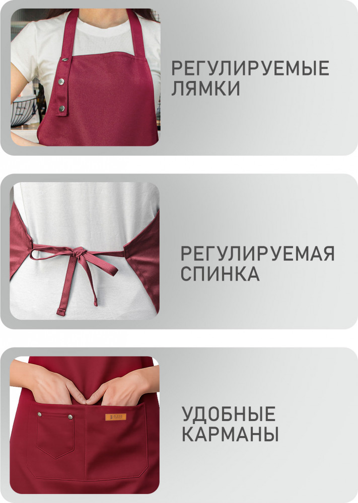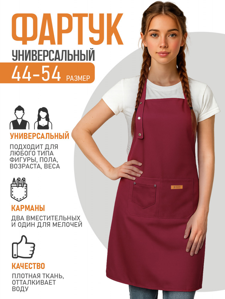 Благодаря регулируему размеру, наш фартук с карманами прекрасно подходит большенству женщин, а регулируемый пояс позволяет идеально подогнать фартук по фигуре, обеспечивая максимальный комфорт во время работы. Благодаря бордовому цвету, этот фартук выглядит стильно и элегантно, подчеркивая профессионализм его обладательницы. Выбирайте наш универсальный фартук мастера, который сочетает в себе стиль, функциональность и надежность, и вы не пожалеете о своем выборе.