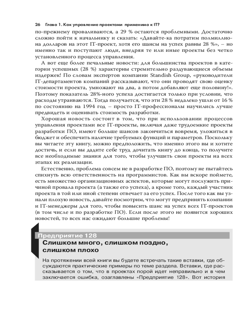 💳 Оплатить за товар можно при получении 🇰🇿 Есть бесплатная доставка по Казахстану от 1 дня 🎁 Копите бонусы с каждой покупки Серия: Управление проектами В отличие от других книг по управлению IT-проектами, в этой книге сочетается изложение основ управления проектами, процессы и процедуры, а также основные бизнес-процессы. Прочитав ее, вы научитесь выстраивать ваш IT-проект в соответствие со стратегическими целями компании. Вы научитесь определять, какой проект решит нужную проблему в нужное время и с высоким качеством. Вы станете настоящим экспертом по настройке рабочего процесса и сможете гарантировать, что проекты будут завершены вовремя, в рамках бюджета и с требуемой функциональностью и возможностями. Если вы раздумывали о том, как побыстрее стать полноценным CIO... может быть, ответ на этот вопрос вы держите сейчас в своих руках. |
