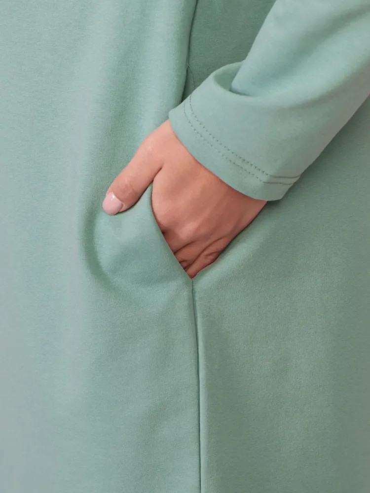 Крой по плечам некрасиво смотрится, можно сказать вообще неправильно выкроен. Ткань на 70 % хлопок, как указано , но на тело вроде приятно. Я буду носить скорее как тунику, и придется перешить немного. В целом для частой носки подойдёт, как платье полуспорт.