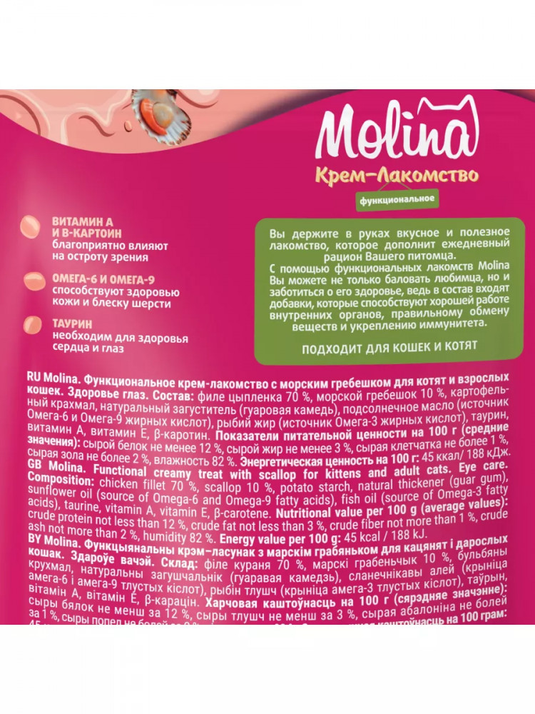 Molina Лакомство для кошек «Крем-суп с морским гребешком»-17% +12