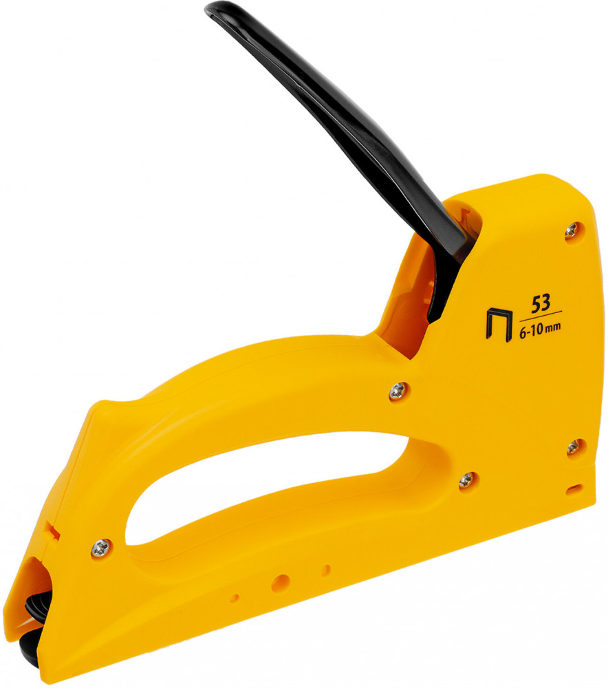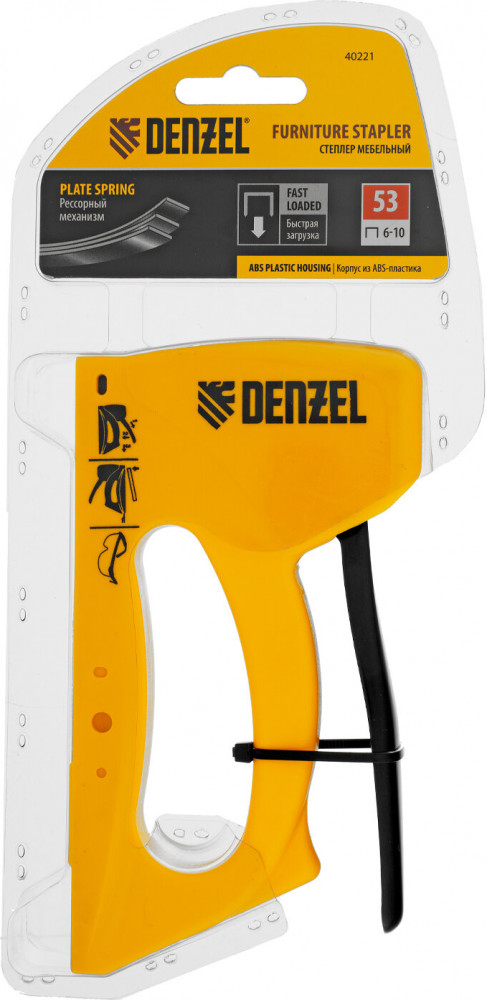 💳 Оплатить за товар можно при получении 🇰🇿 Есть бесплатная доставка по Казахстану от 1 дня 🎁 Копите бонусы с каждой покупки Пластиковый степлер Denzel работает со скобами типа 53 размером 6-10 мм и предназначен для быстрого крепления листовых материалов к основаниям из древесины, ДВП или ДСП. Используется для сборки и обивки мебели, фиксации изоляционных материалов. Ударный механизм рессорного типа не требует повышенных усилий от пользователя, поэтому продолжительная работа с инструментом не вызывает дискомфорт. |