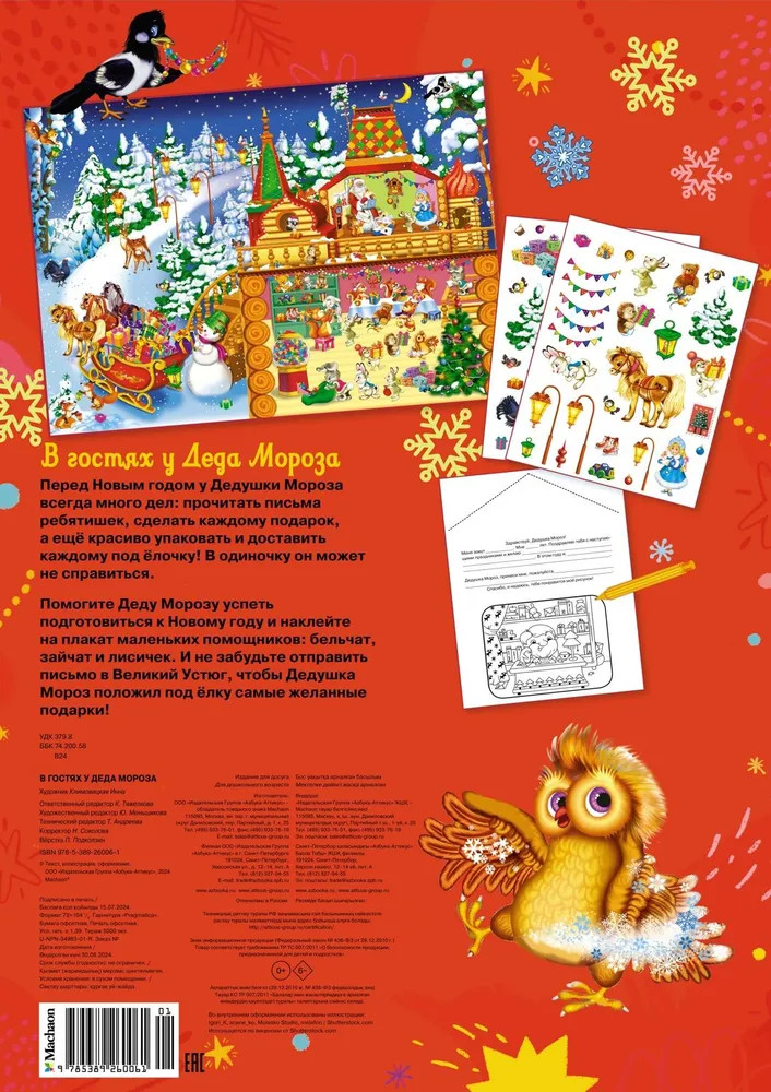 💳 Оплатить за товар можно при получении 🇰🇿 Есть бесплатная доставка по Казахстану от 1 дня 🎁 Копите бонусы с каждой покупки Серия: Новогодний плакат с наклейками Перед Новым годом у Дедушки Мороза всегда много дел: прочитать письма ребятишек, сделать каждому подарок, а ещё красиво упаковать и доставить каждому под ёлочку! В одиночку он может не справиться. Помогите Деду Морозу успеть подготовиться к Новому году и наклейте на плакат маленьких помощников: бельчат, зайчат и лисичек. И не забудьте отправить письмо в Великий Устюг, чтобы Дедушка Мороз положил под ёлку самые желанные подарки! |